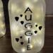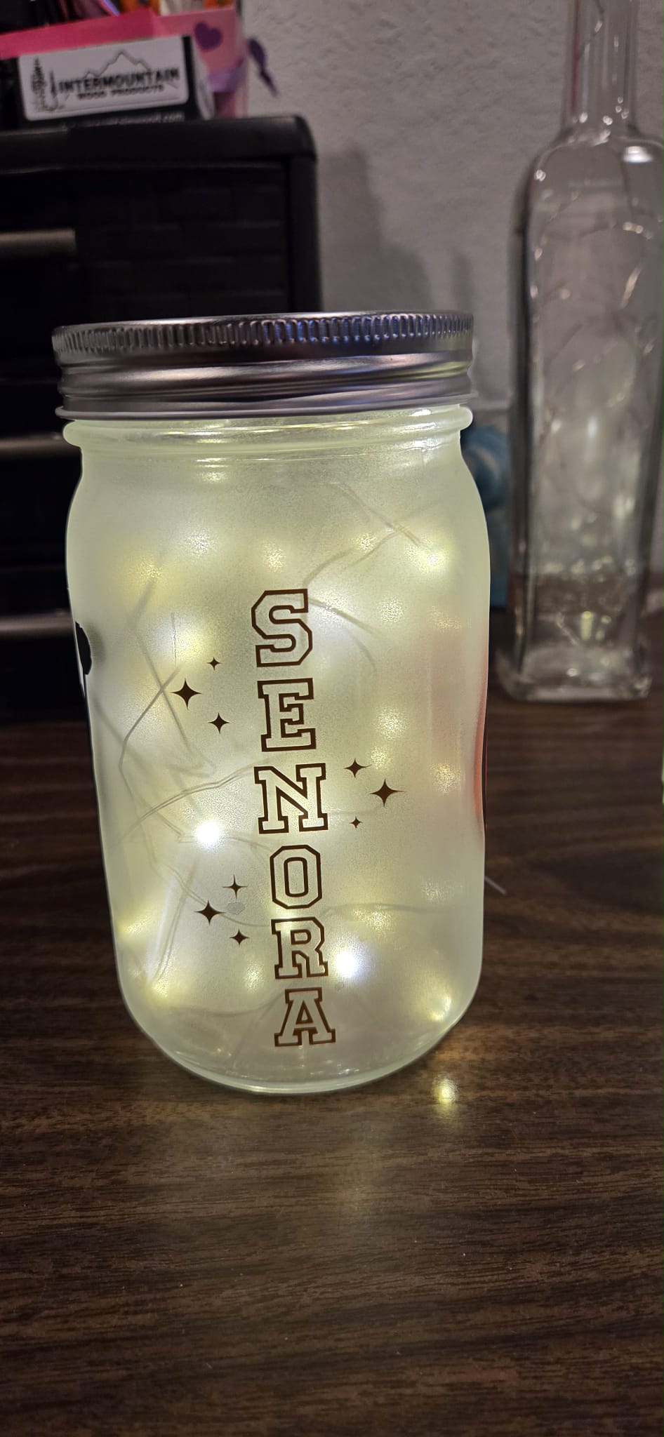 This custom Night Light is made from quart sized white/frosted mason jars and can be completely customizable. Let's work together to dream up a custom design for this stunning night light! You choose the colors and design. You can also use any of the designs pictured. If you can dream it, I can make it! **Note that some images may not be usable due to copyright. (Examples of custom night lights in the pictures, but yours can be completely different!)