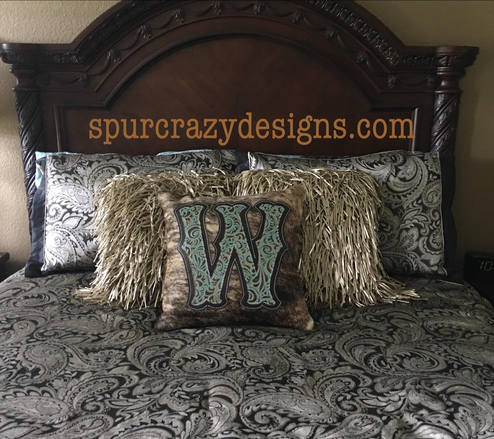 Cowhide monogram pillows, customizable lettering, can be made with fringe or no fringe.  Made to order.