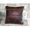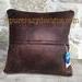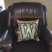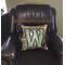 The monogram pillows are 18"x18" and have a 20"x20" pillow insert to help maintain the fullness.  The front of the pillow is brindle cowhide.  The monogram is made of embossed leather and trimmed out with a complimenting, solid colored, smooth leather.  The back is made of a microfiber material and has a velcro closure.  Pillows may be ordered with or without leather fringe.  The fringe is 12" long.  Custom orders are welcome.
