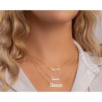 Our Custom Name Necklace, bathed in the radiance of 14K gold, seamlessly combines elegance and affordability. The custom pendant delicately hangs from a matching chain, creating a look that's not just radiant, but deeply meaningful.