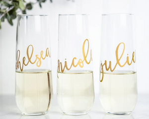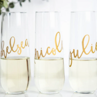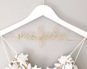 Our specialty is handmade wire hangers. The wire lettering for every bridal hanger is completely sculpted by hand with no machines or stencils. As a result, each piece is 100% unique with lots of different color options so you can create a hanger that fits your wedding perfectly! We also create other handmade keepsake items for bridesmaid proposals, wedding day favors + décor, and bridal gifts such as personalized glassware, custom sweatshirts, and embroidered robes.