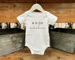 Use this adorable embroidered onesie to announce your pregnancy, your new baby's name, or use it for family photos! Available in a variety of colors and can be customized with your baby's name.