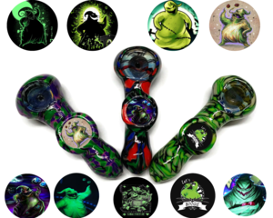 This custom tobacco pipe is a glass pipe with a clay shell. It is the clay shell that gives these smoking bowls their beautiful & unique looks.