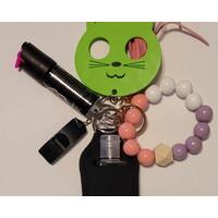 Bracelet Keychain has rainbow beading with a rainbow tassel