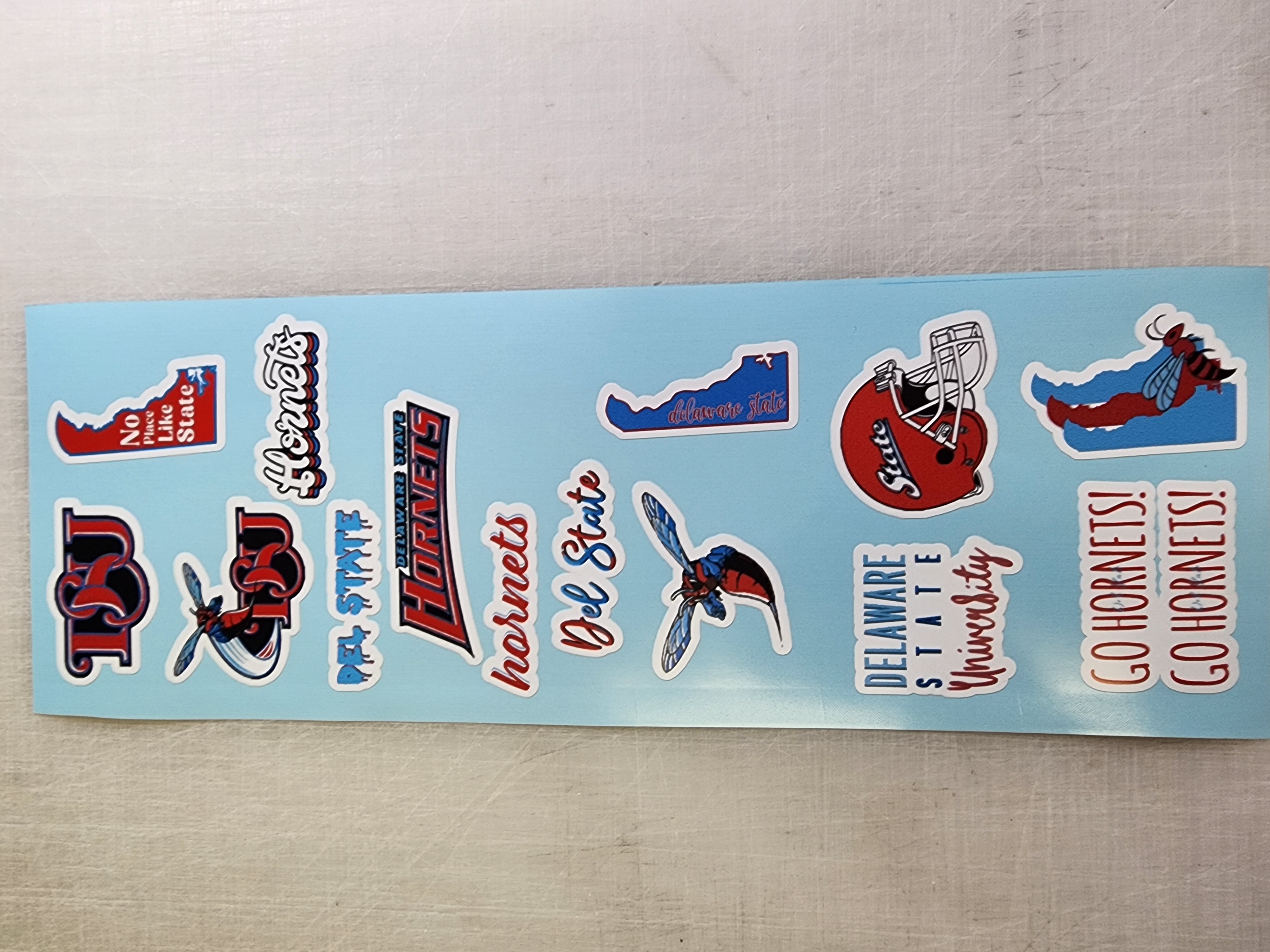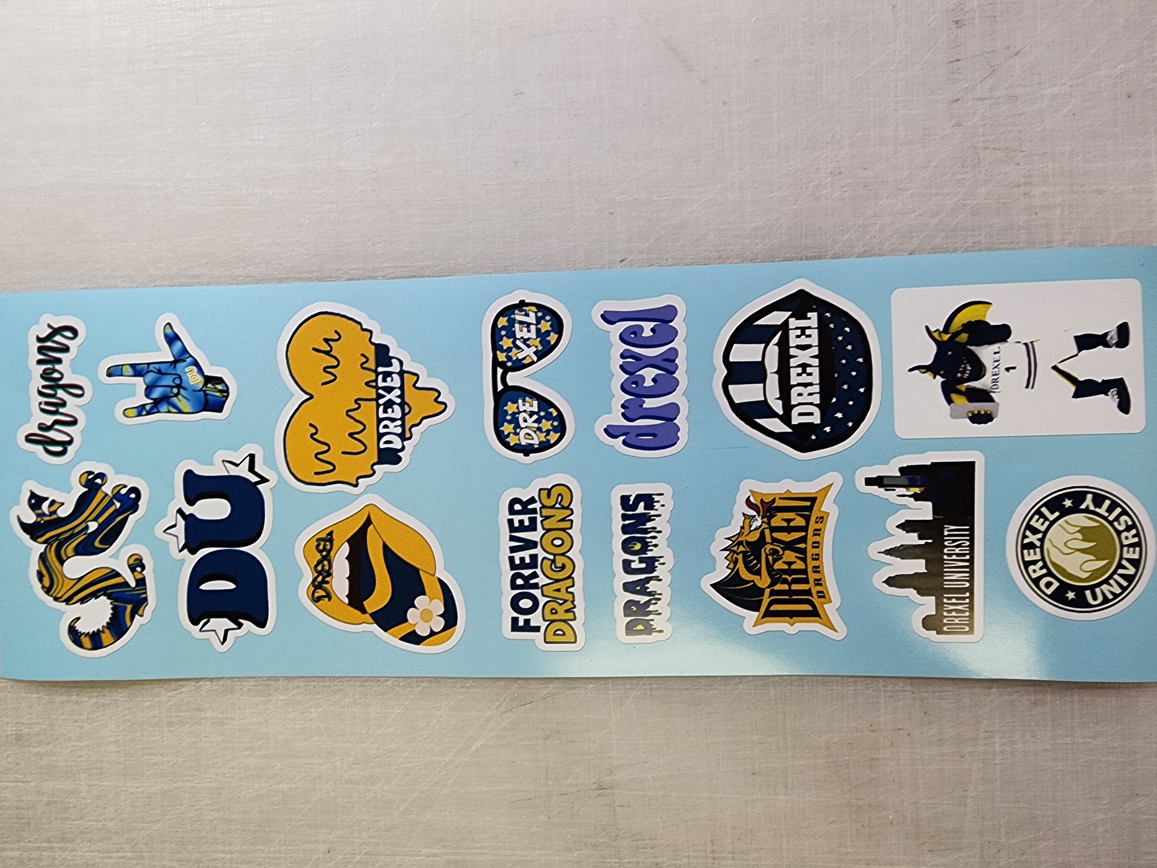 Our stickers are produced on vinyl, not paper. They are water resistant…and hold up to the sun. We make yard signs and car decals with the same material. These are perfect for your student to add to the back of a cell phone, notebook, computer, a jar or just to put on a care package that you will be shipping out…not all items are virtual. ? Each sheet is approximately 5″ wide by 12″ long, we get between 10 and 11 stickers to a sheet. Because of the length, we will cut the sheet in half (not thru a design) for mailing purposes. Perfect for dorm reveal parties. Congratulating a student on getting into a specific school and so much more. We will send you a mockup prior to going to print, please check your messages after placing your order. (In order to keep our rating high on etsy, if we don't hear back from you within 5-days of sending the mockup, we will go to print and mail out your order without the approval)