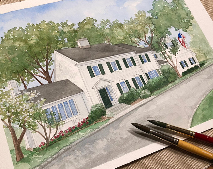 These custom portraits make for wonderful gifts for special occasions such as anniversaries, birthdays, weddings, and closing gifts for realtors.To ensure the best possible results, please contact me before placing your order so that we can discuss your project and you can send me a clear, high-resolution photo to work from. This will enable me to capture all the details of your location and create a painting that you will treasure for years to come.Here's how the process works: Once I receive your photo and we agree on the details of your portrait, I will hand-sketch your home onto Arches cold-pressed watercolor paper. I will then send you an email photo of the sketch for your review. Once you approve the drawing, I will begin to paint your custom portrait.Please note that I offer a variety of sizes and prices for my portraits, which you can find in the drop-down menu. If you need a different size, please contact me and we can discuss it.I am excited to work with you and create a one-of-a-kind piece of art that you will cherish for years to come. Shipping is with USPS, and expedited shipping can be arranged upon request. Thank you for choosing Artistic Home Portrait!
