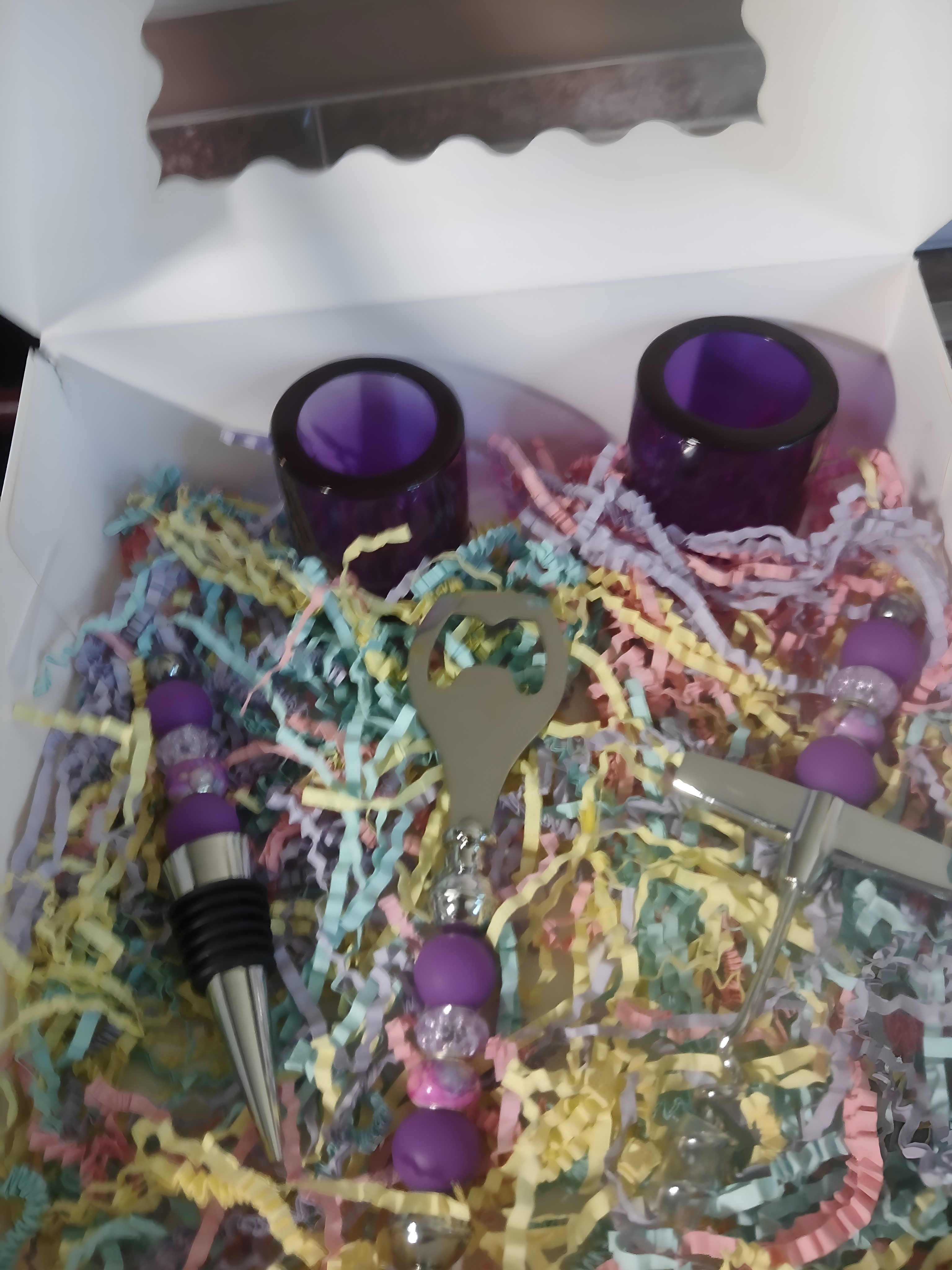 Do you need a gift for someone that loves wine? Well this custom wine party in a box is just the thing for a hostess gift or just a gift. This includes a bottle opener cork screw wine bottle stopper and 2 shot glasses choose your color
