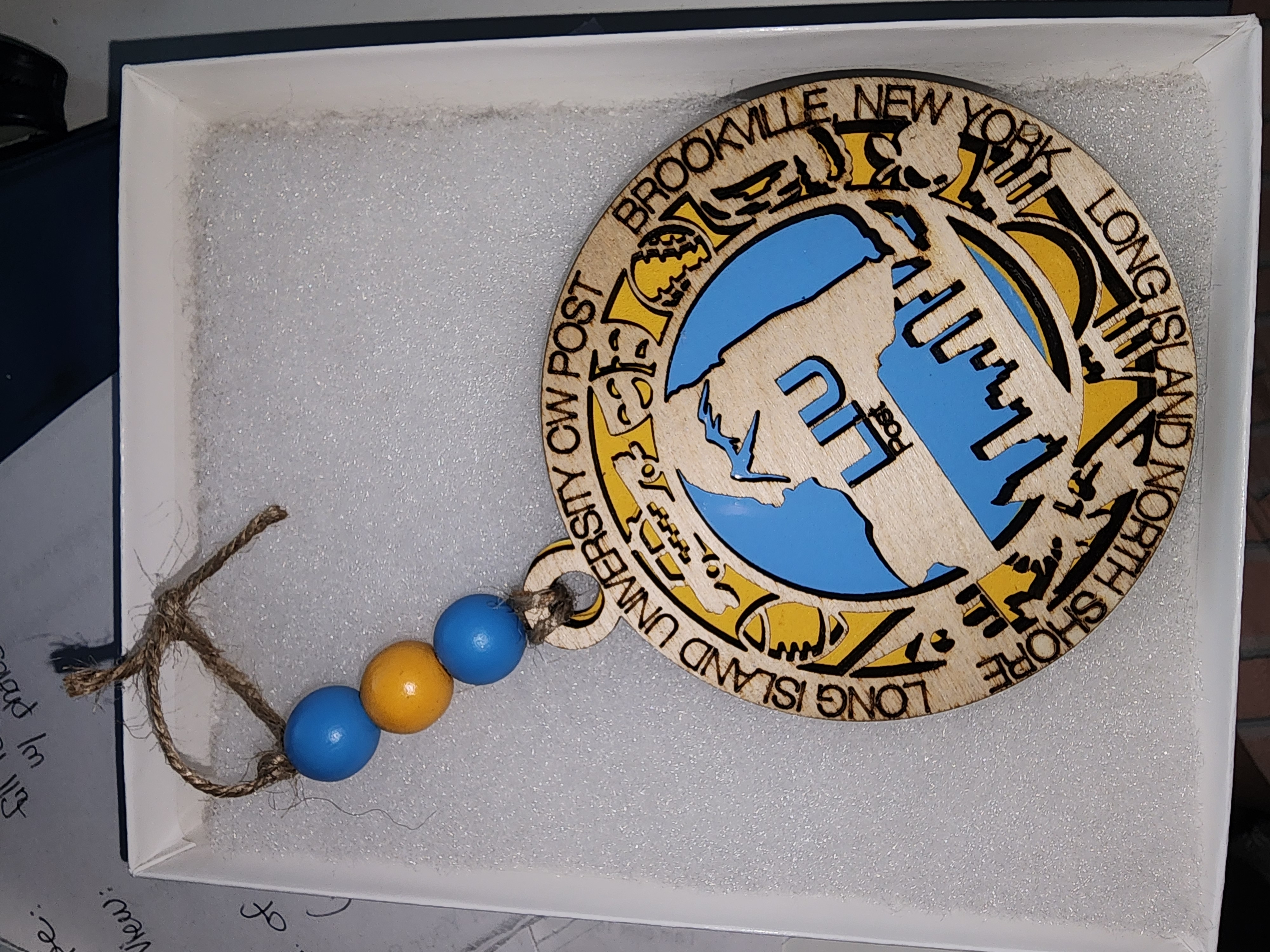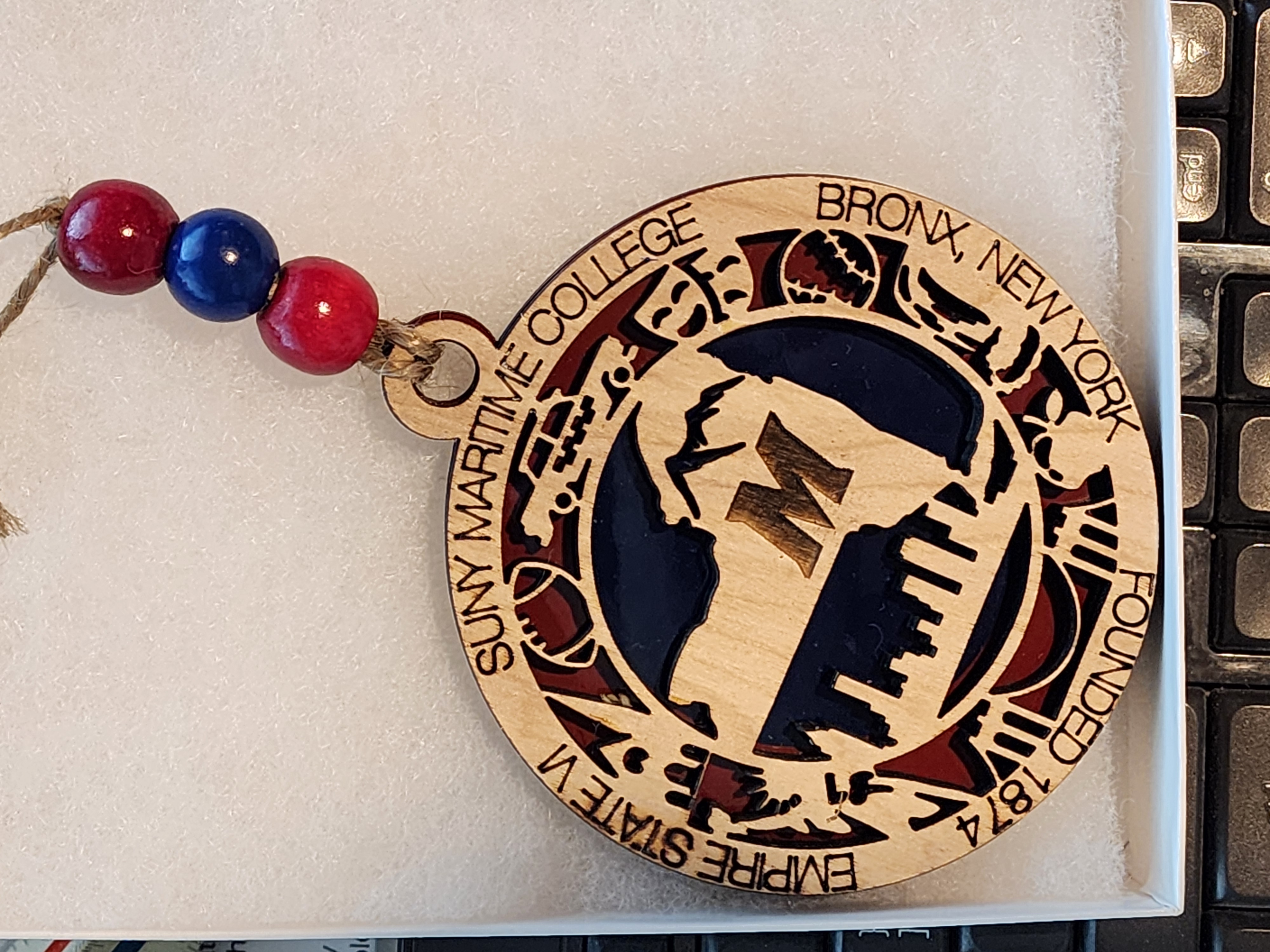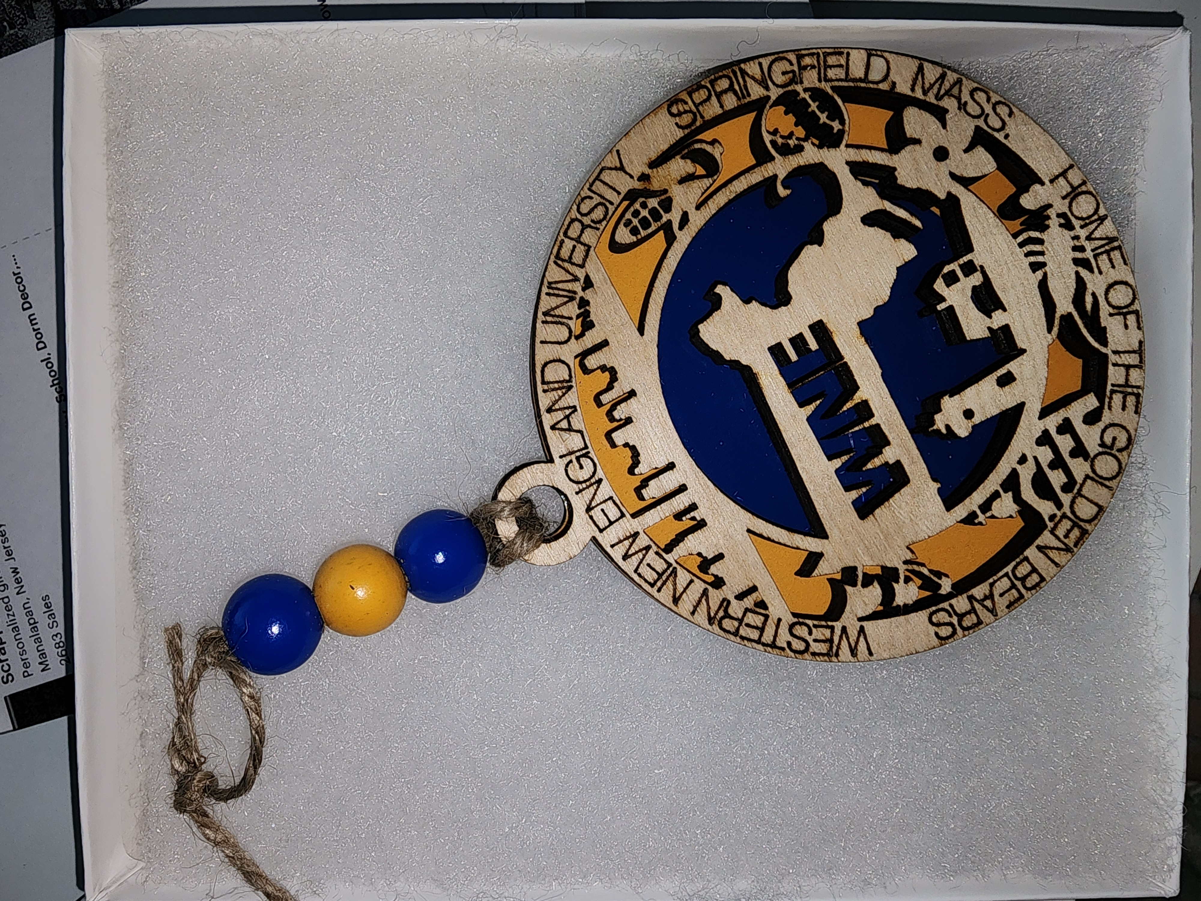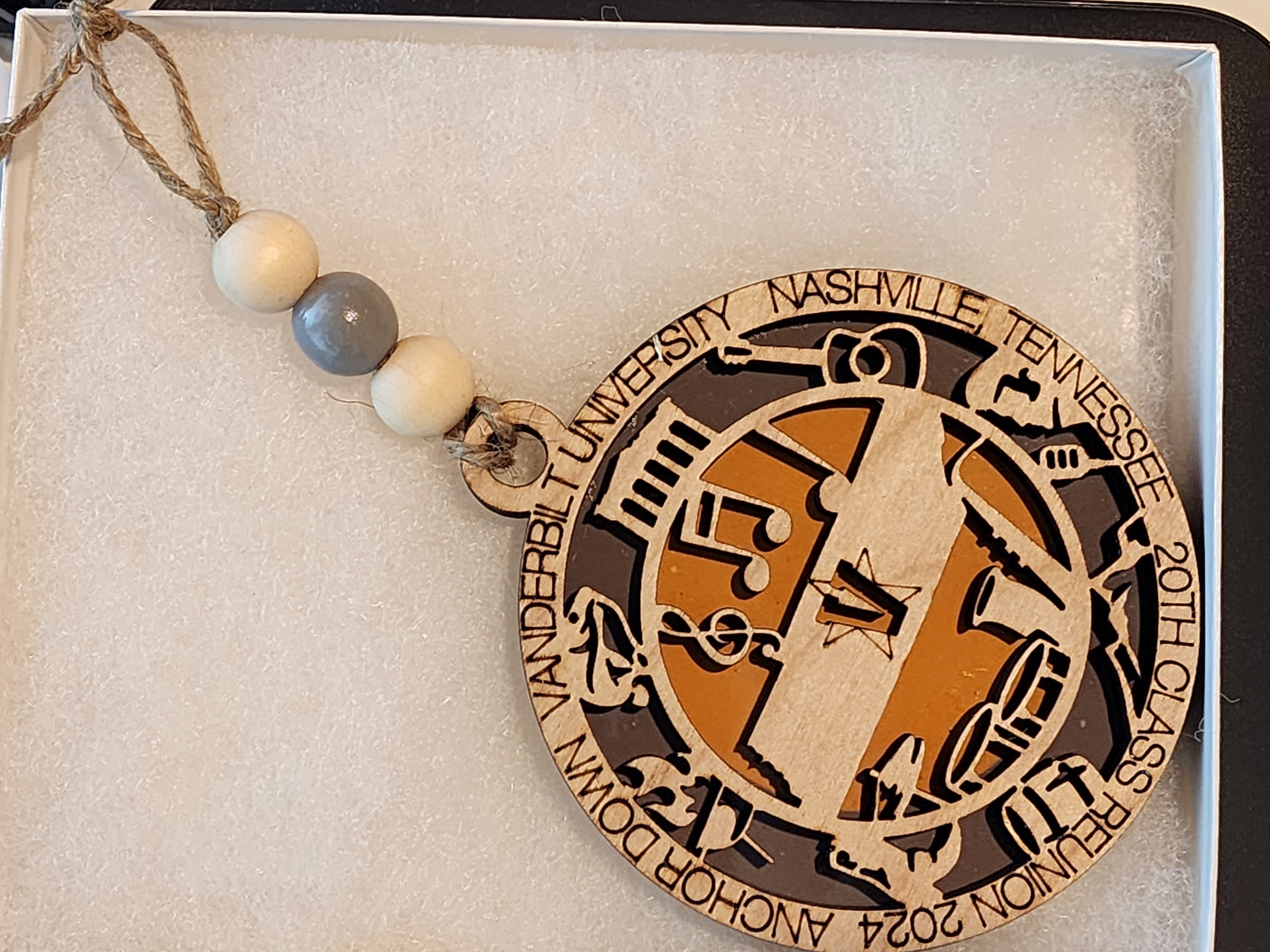 This is sure to be a conversation piece for years to come. Since each ornament is hand made, wood color may vary slightly, backer color will be the school's primary color. Each ornament comes with jute and beads (bead color to match the school colors as closely as possible). Approx. size is 4″ diameter…not just for Christmas.