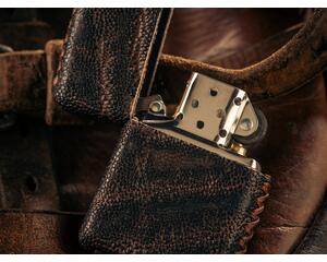 I use a wide arrangement of exotic animal hides to wrap my lighters as well as standard cow hides. Each hide or skin is different and no 2 are alike. These are 100% hand made and there is no standard to go by. I have to measure and carefully calculate each hide for these because some flex more then others. I use genuine Zippo lighters with a choice of fuel insert. Butane or standard lighter fluid. The butane insert is a more wind proof flame like a torch as opposed to the standard old school Zippo style insert which is a regular flame. They all don't line up exactly sometimes because they are all one off's basically.These are very unique and you won't fine too many people wrapping these lighters in these types of hides because they are expensive and rare sometimes.