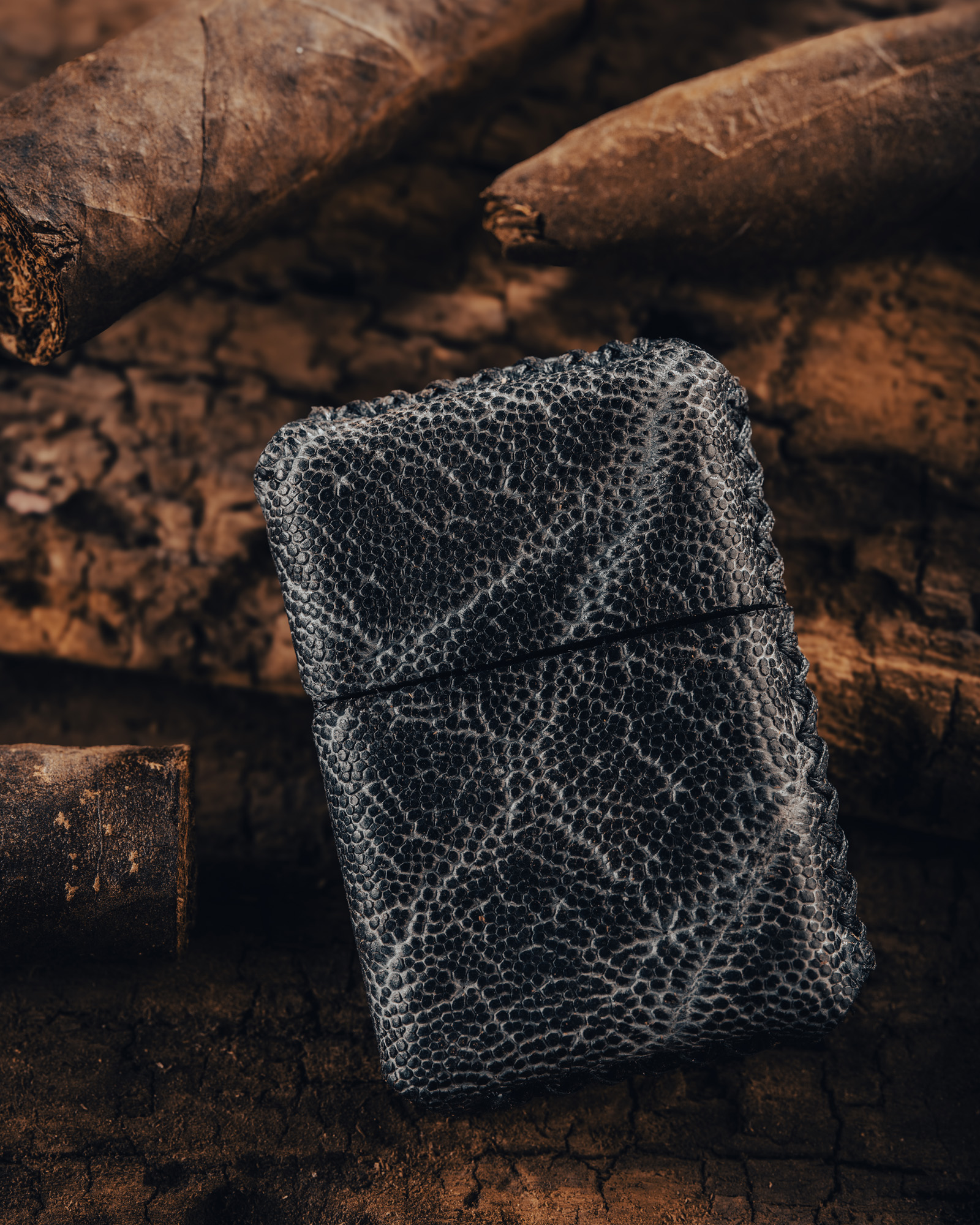 This is a custom wrapped Zippo lighter in grey Hippo hide. Perfect gift for a cigar enthusiast or someone who wants to look stylish lighting candles and camp fires!