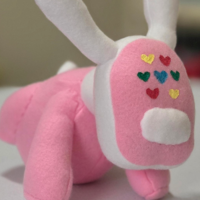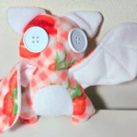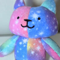 These plushies are made with super soft fleece, polyester thread, Polyfill stuffing, and optional fabric paint details/plastic squeakers. A sewing machine is used for the larger stitches, but the smaller parts are sewn on by hand - including the horns and keyboard.
