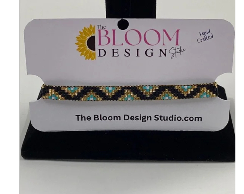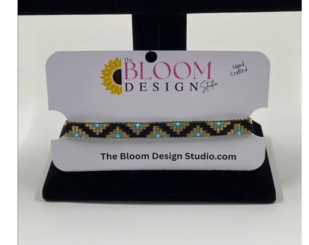 Each of our handcrafted loom-beaded bracelets begins its journey with a detailed design pattern, thoughtfully created to ensure a stunning final product. The process starts by setting up a specialized jewelry loom, which serves as the foundation for weaving. Using high-quality Japanese glass Miyuki Delica seed beads in size 11/0, known for their uniformity and vibrant colors, we meticulously string each bead to follow the intricate pattern.