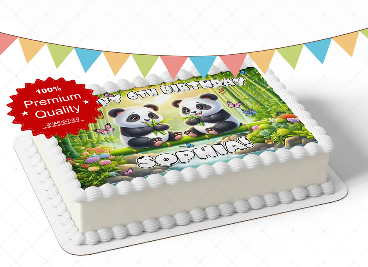 Cute Pandas In Bamboo Forest Edible Image Themed Edible Birthday Party Cake Topper Sheet Edible Sticker Decal