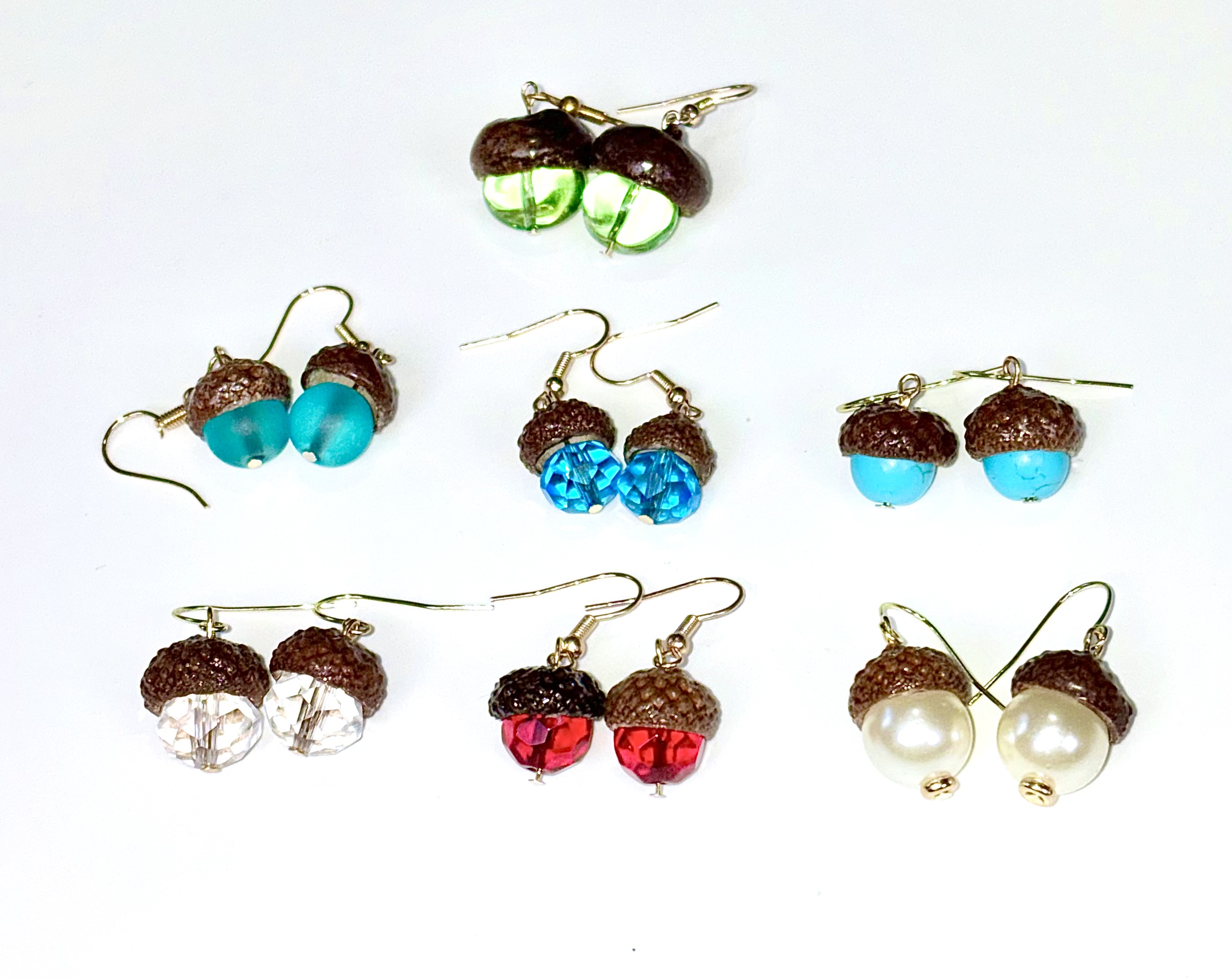 • Material: Real acorn caps over faceted glass crystals or smooth beads.