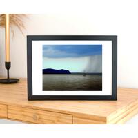 The print has a border around the image for matting, or can be framed without a mat since the border gives the appearance of a mat.