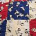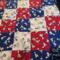 Cotton material was used for the twenty-five 7" squares for the front and one solid piece for the back to include batting for the quilt.