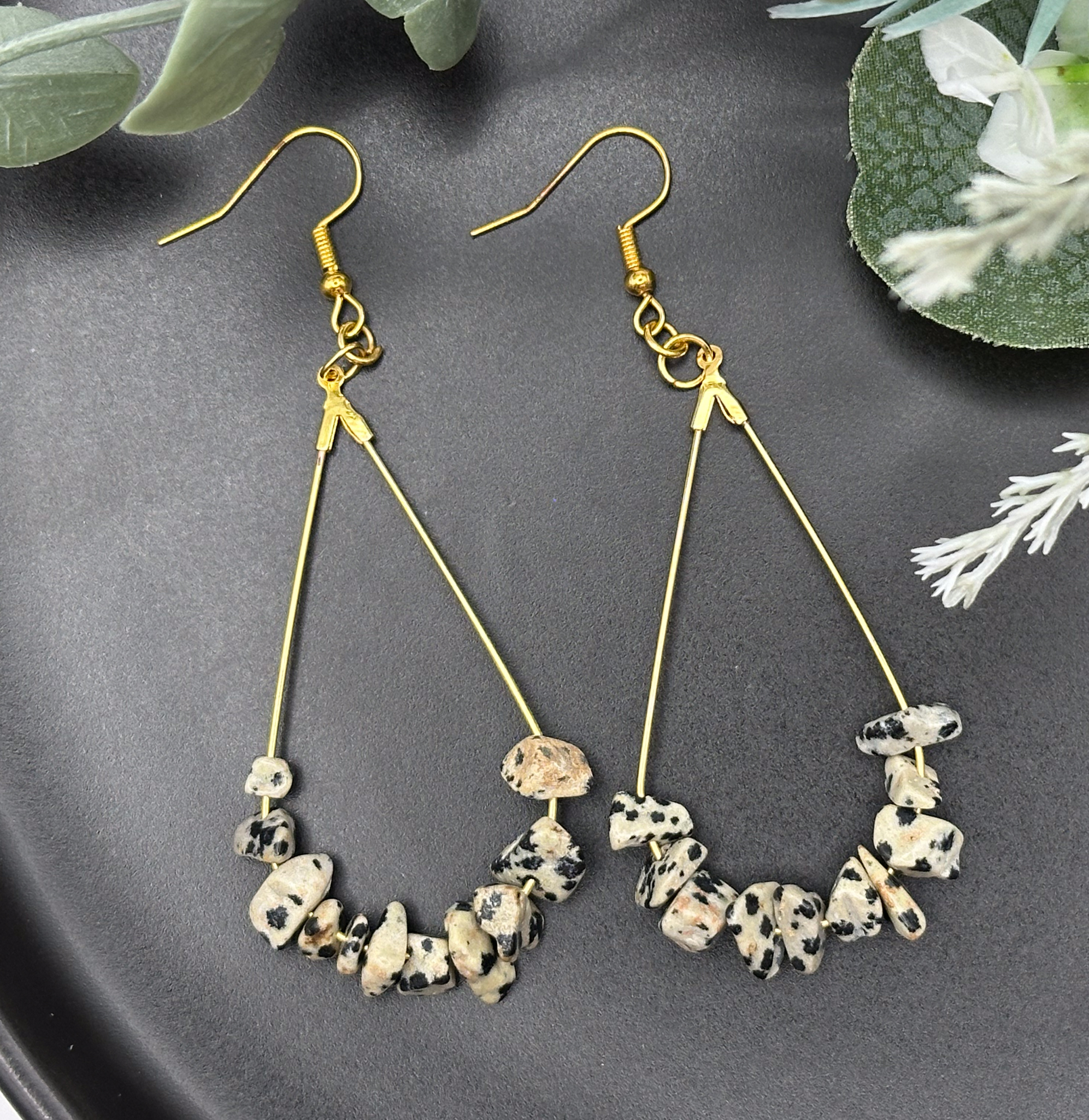 Add a touch of elegance to your look with these stunning Dalmatian Jasper drop earrings! Each pair features natural gemstones that shimmer beautifully in the light, making them the perfect accessory for any occasion.