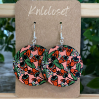 I make these earrings by printing off an image on my sublimation printer onto sublimation paper, and then pressing the paper onto the earrings with a heat press.