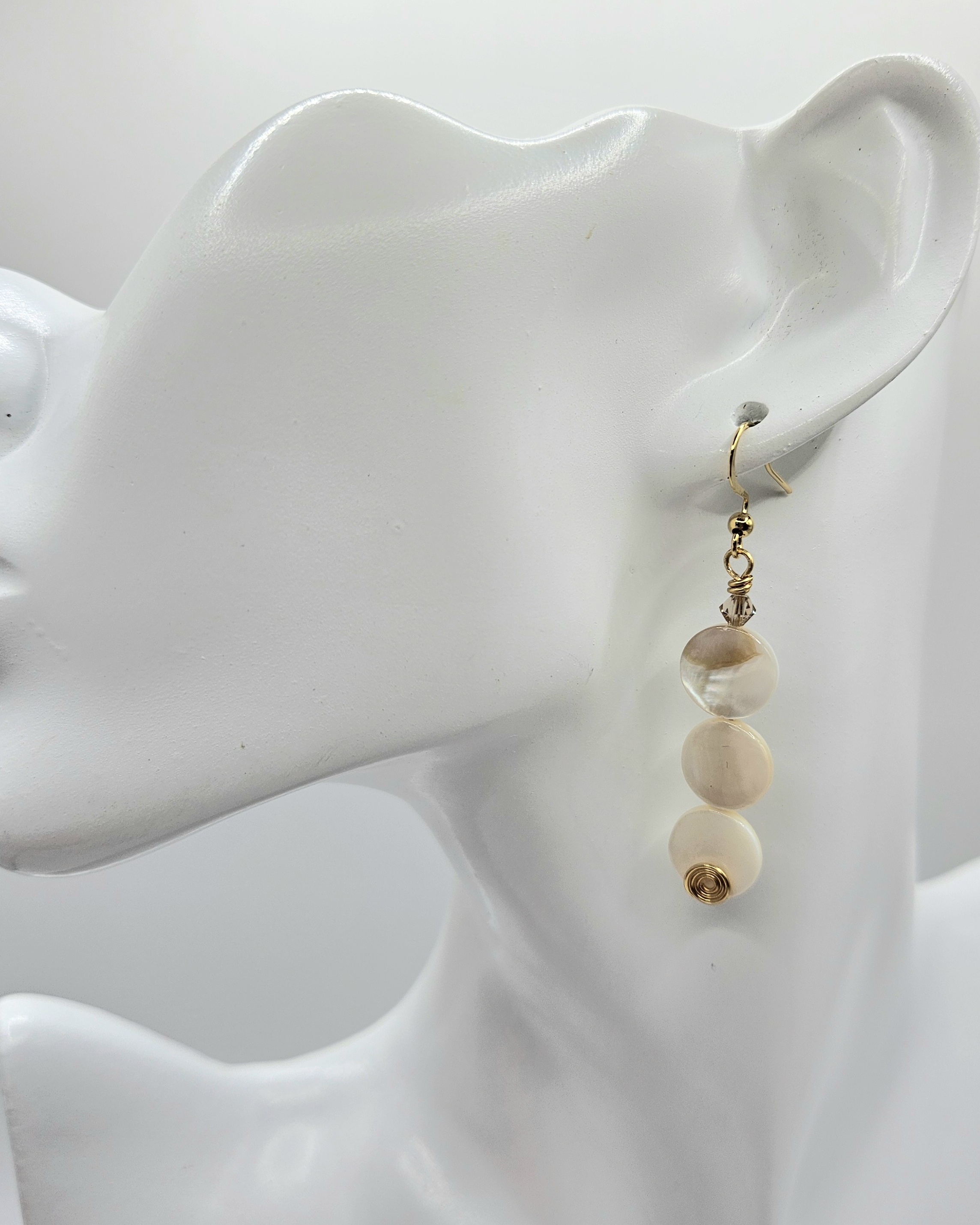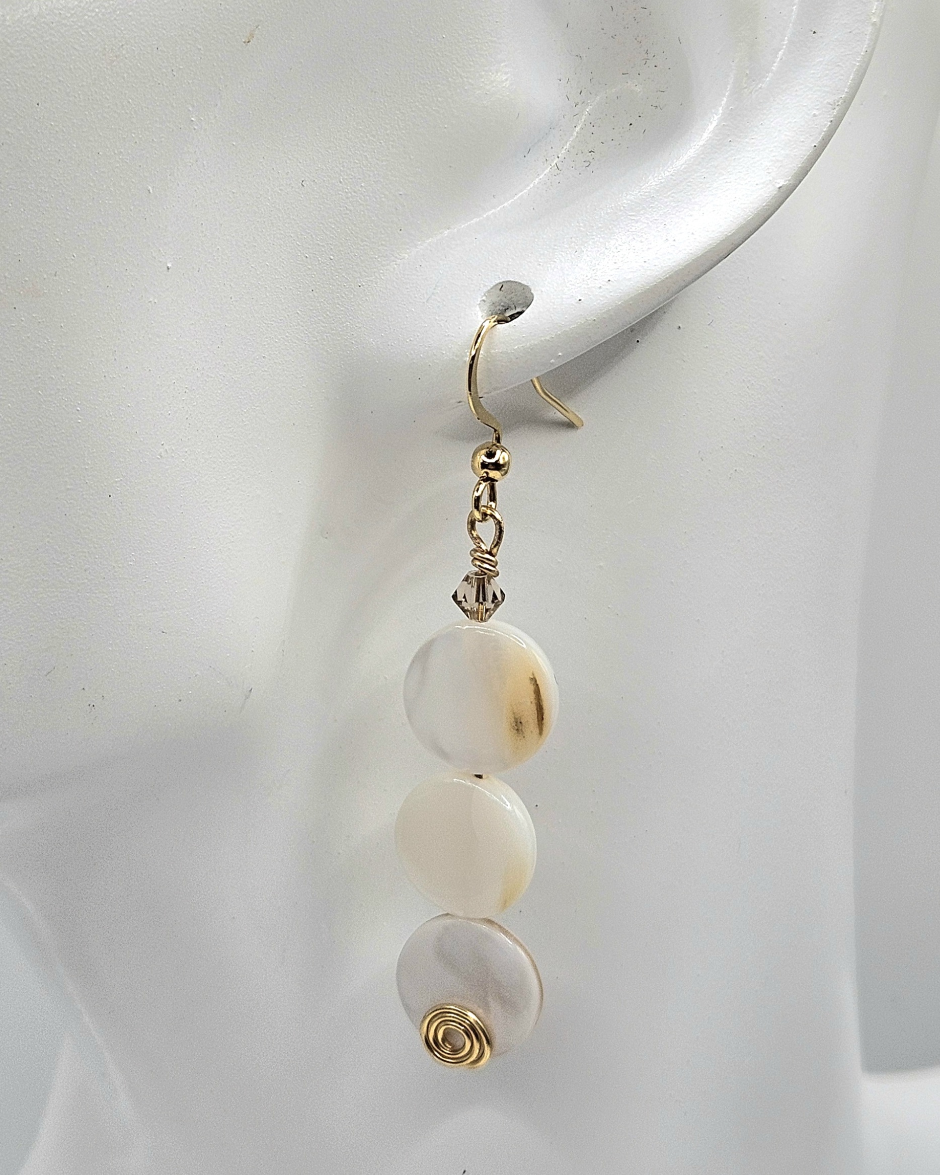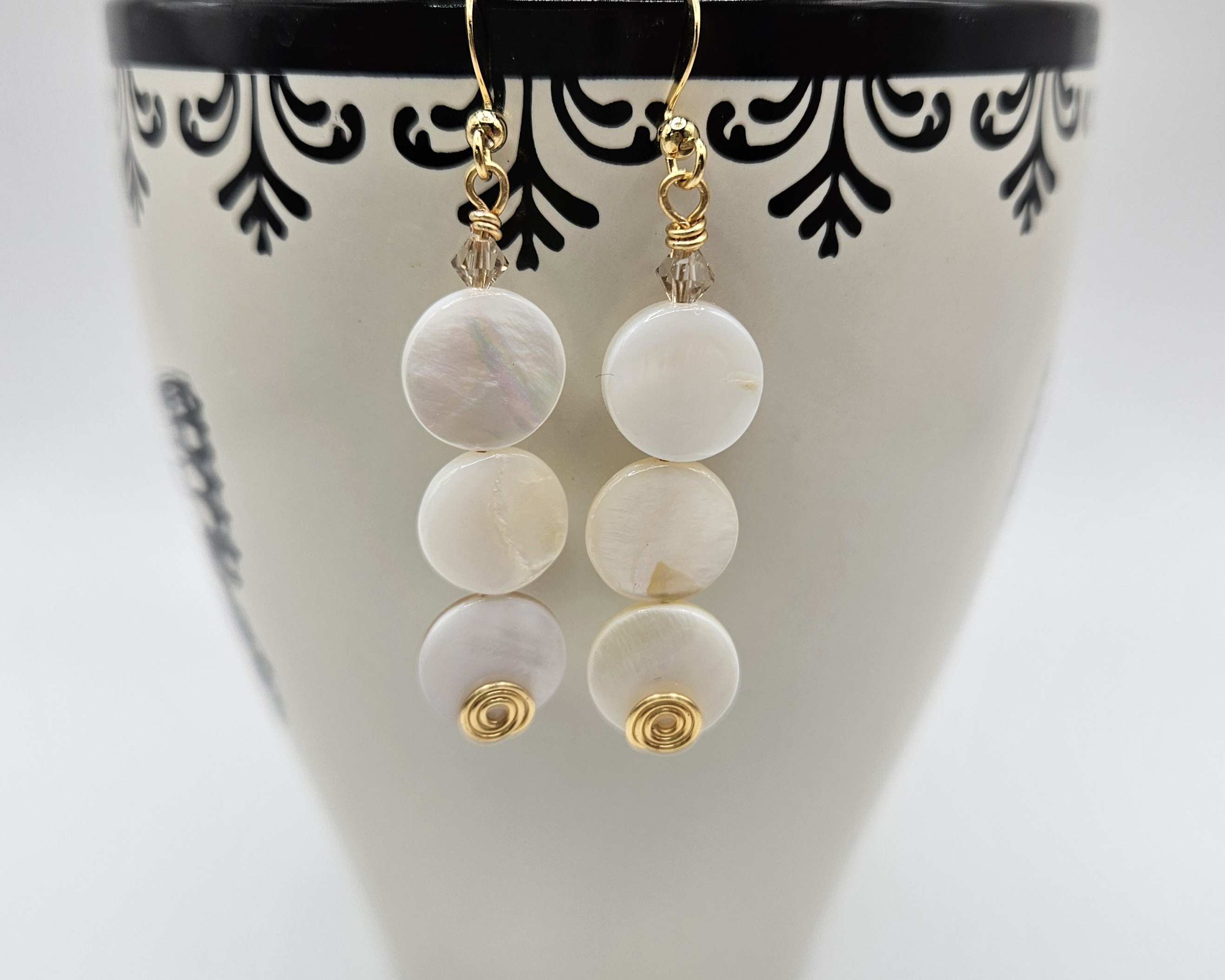 Discover our Handmade of Mother of Pearl earrings, crafted with shimmering Austrian crystal accents and intricate wire work