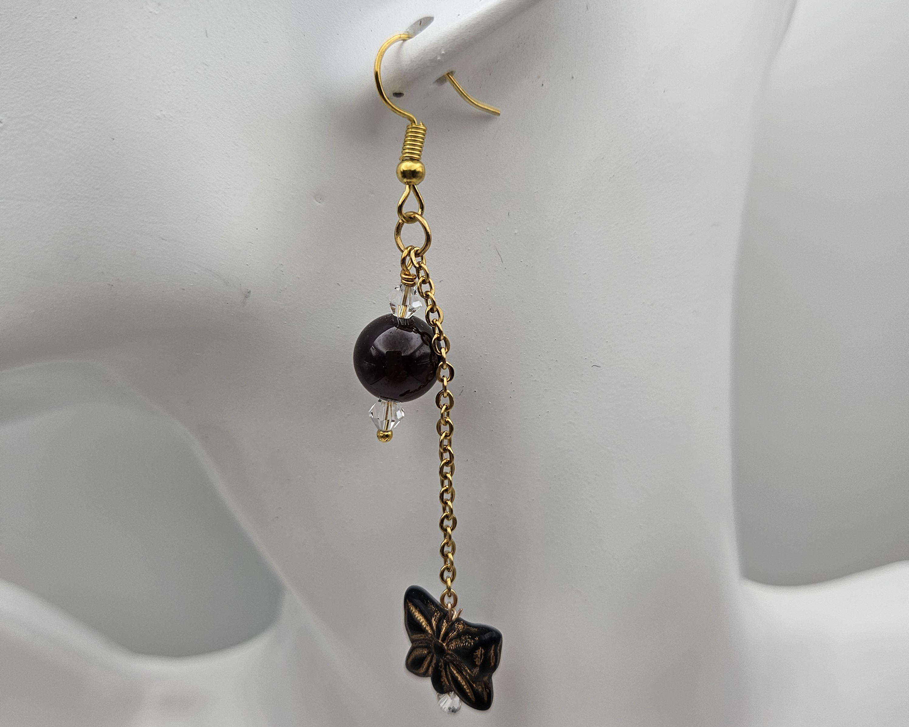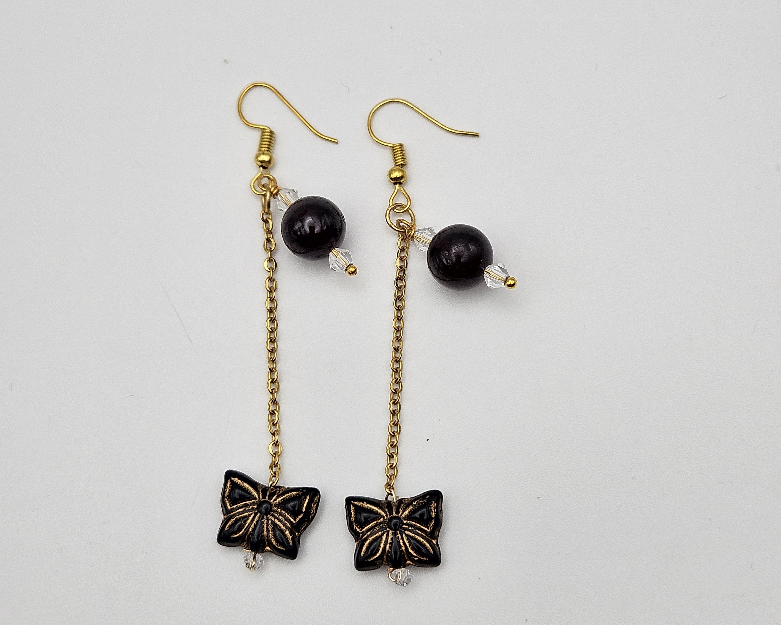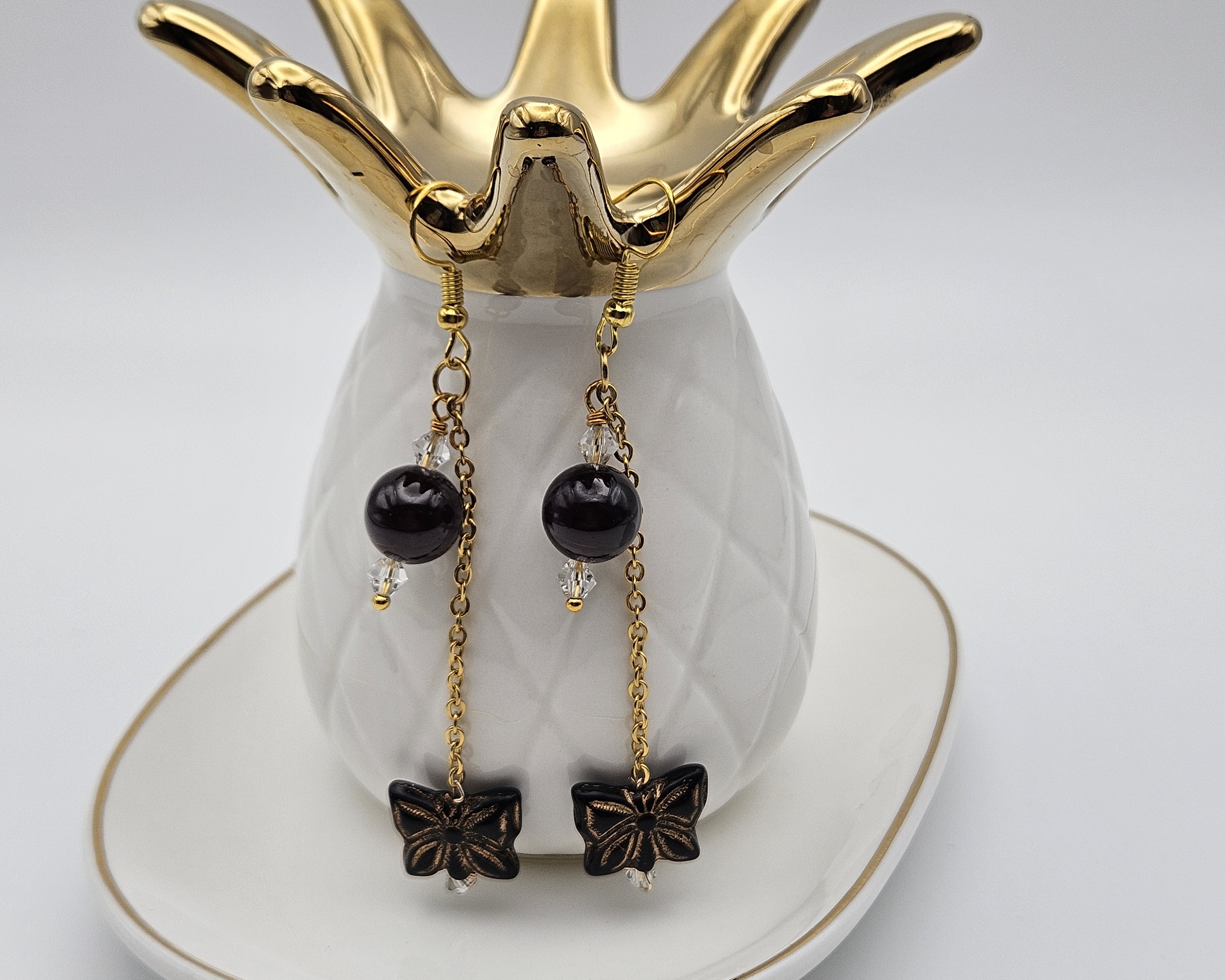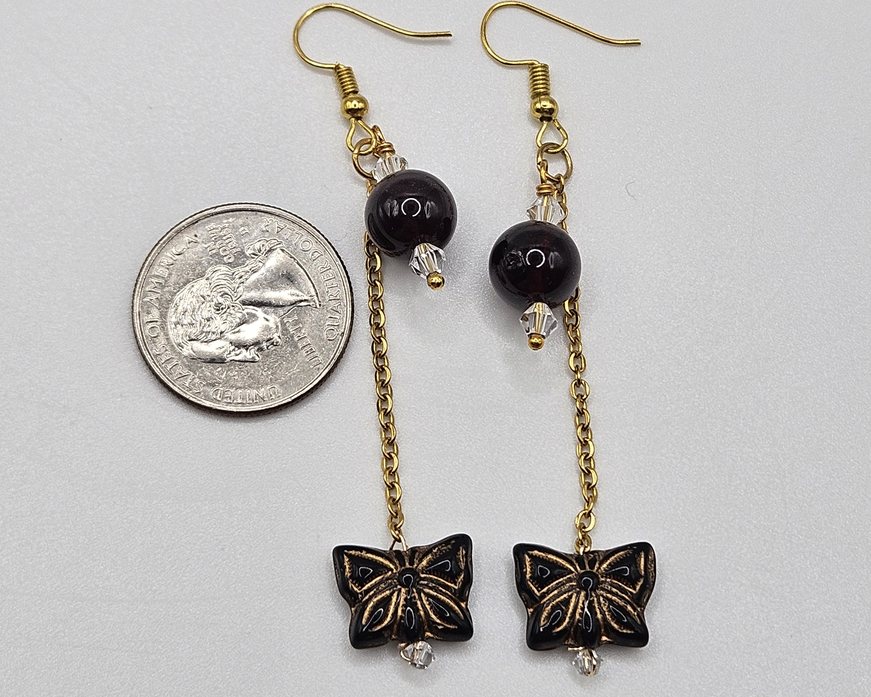 Elegant Garnet & Butterfly Dangle Earrings 2.5" long
