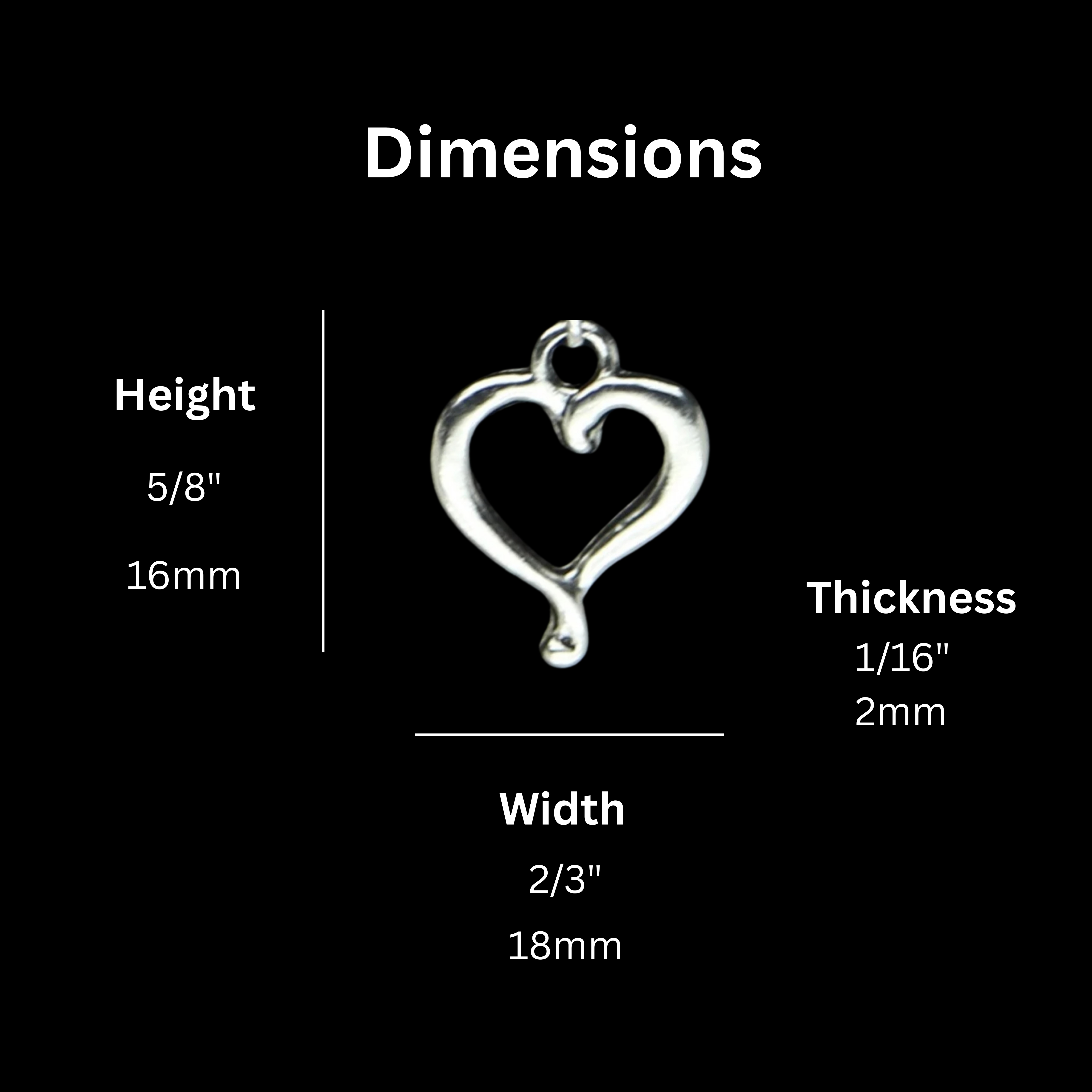 > Silver Plated Open Heart Charms