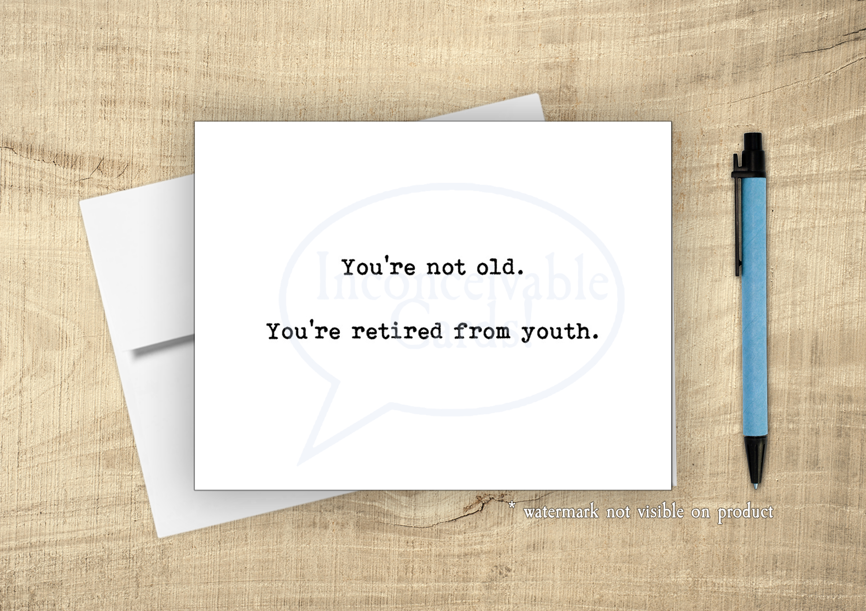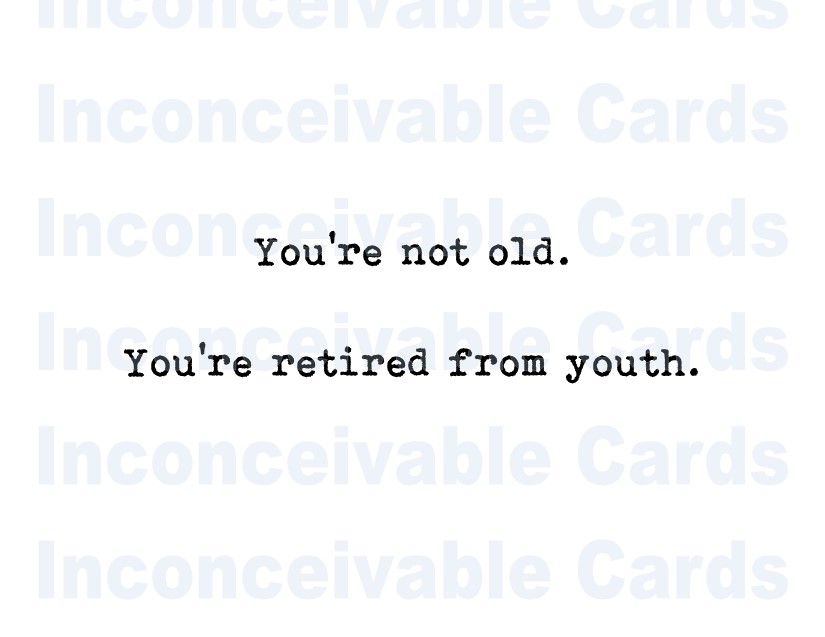 Because getting older doesn’t mean getting boring—it means you’ve graduated from youth with honors (and probably bad knees). This bluntly witty card is perfect for friends who laugh at their own creaks and groans—and for anyone who believes aging should come with a pension and a party.