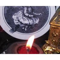 This Dark Moon candle can be used for Banishing, removing addictions, divorce, stopping thieves and stalkers, bringing change and any "Dark" work you wish to preform.