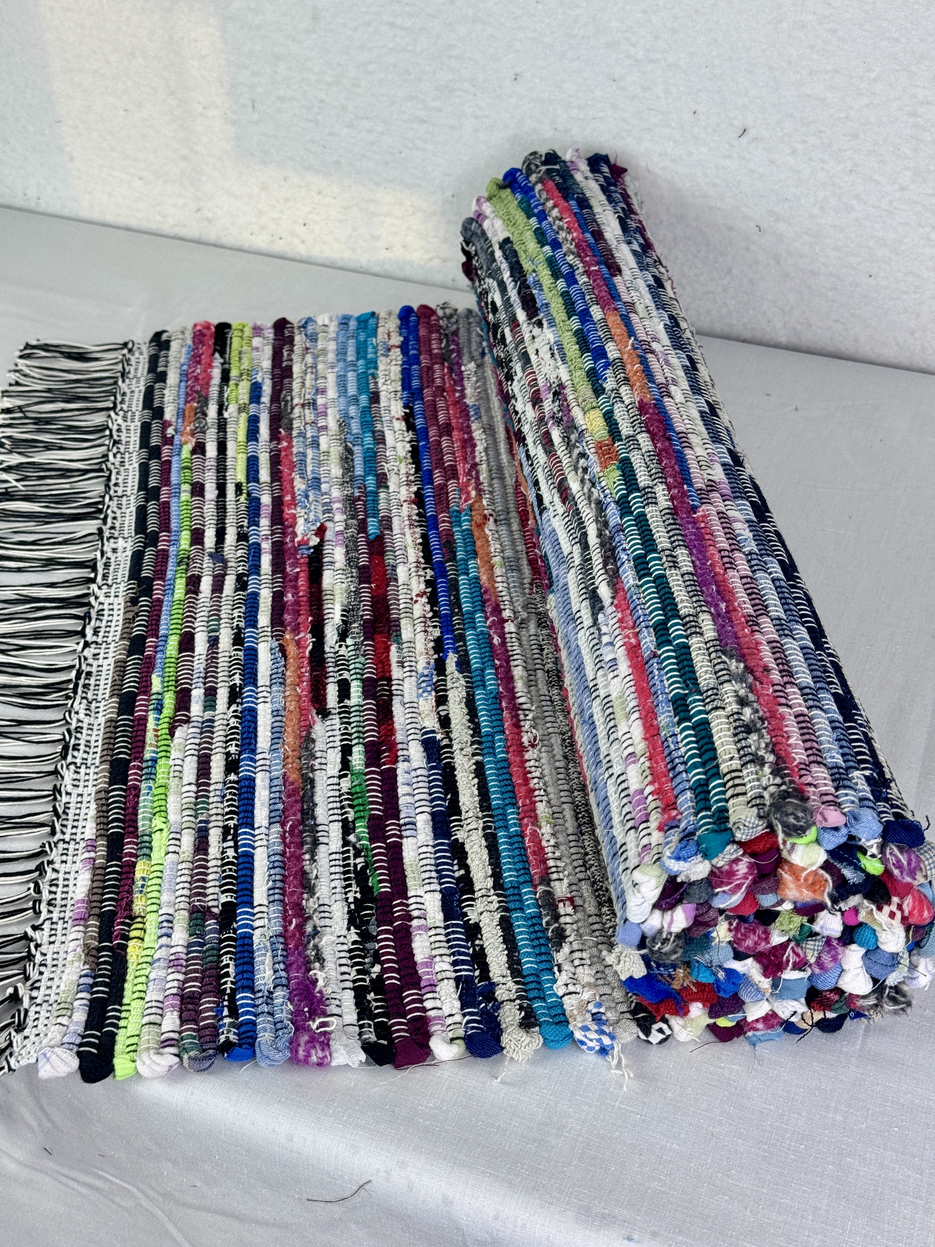 Discover the extraordinary world of recycling with my remarkable rugs. Crafted from once-beloved household textiles, these rugs breathe new life into forgotten fabrics. Each rug is a captivating tapestry of repurposed wonders, blending sweaters, socks, shirts, jeans, bedding, and beyond. Each rug lends its own uniqueness due to the blend of textures and colors.