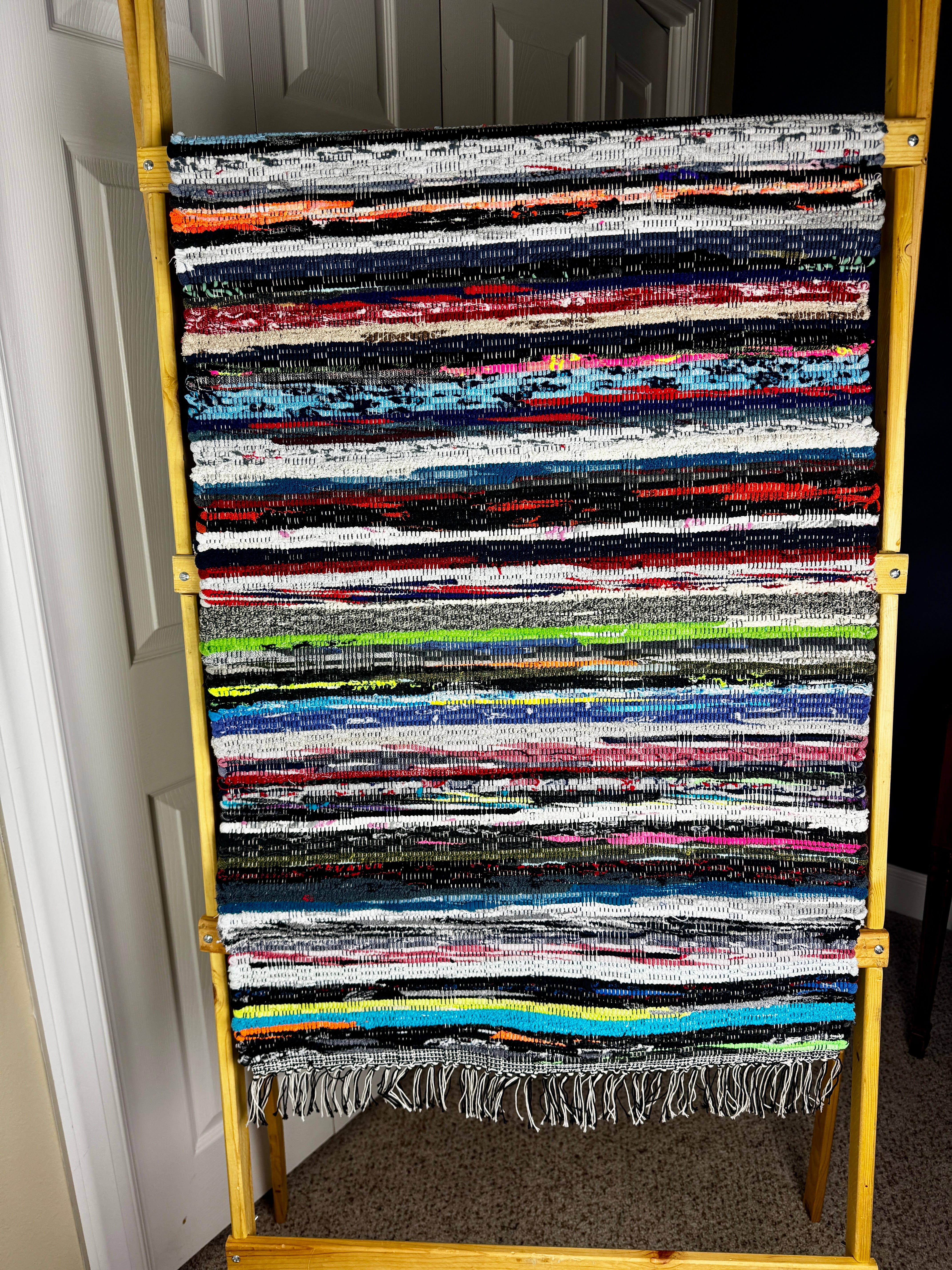 These days I call central Iowa home, and I carry on that family tradition by turning worn-out clothes and household textiles into handwoven rag rugs for 45+ years. Everything I make is crafted from upcycled materials—because I still believe what’s old can be made useful again.