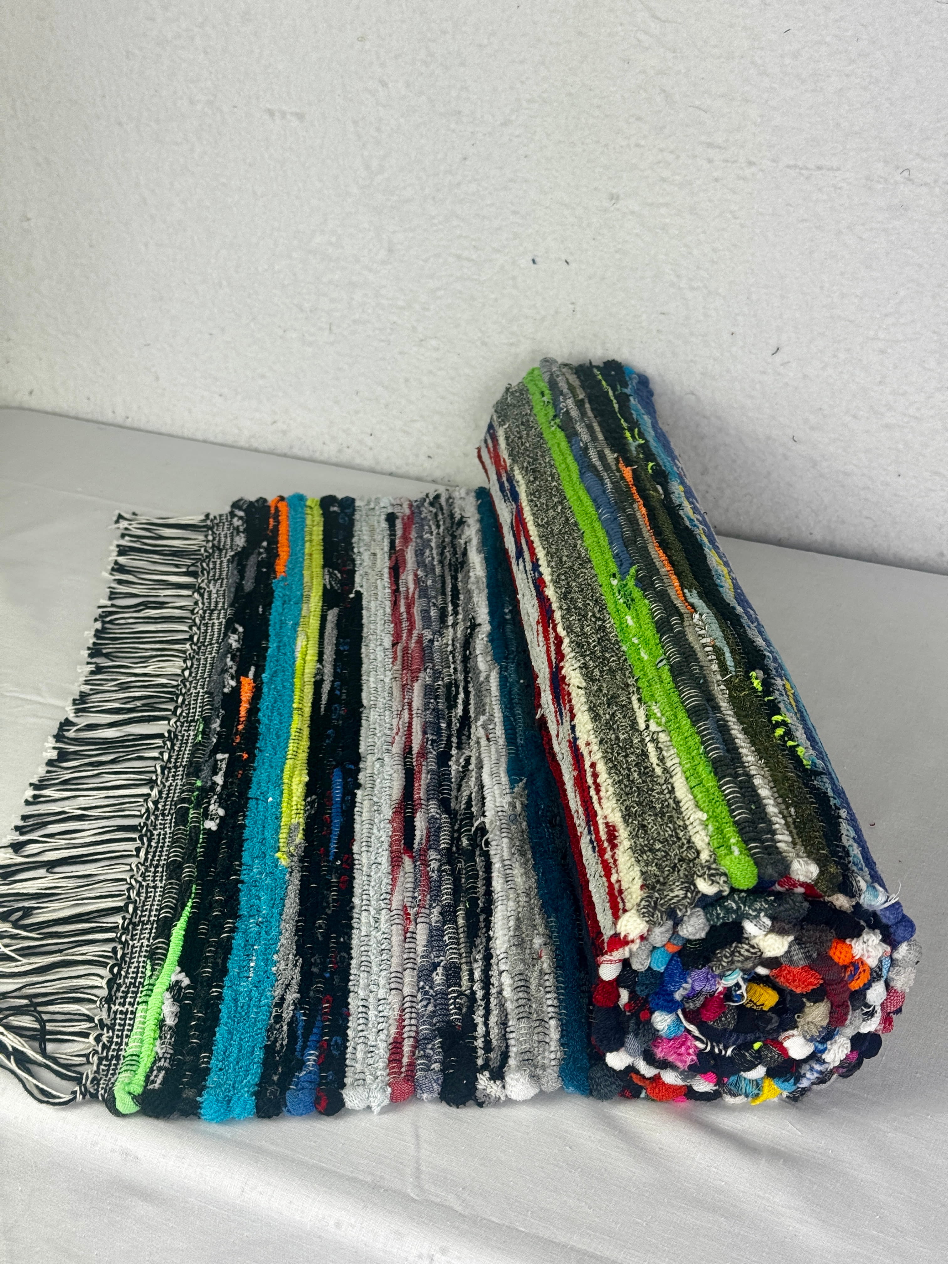 Discover the extraordinary world of recycling with my remarkable rugs. Crafted from once-beloved household textiles, these rugs breathe new life into forgotten fabrics. Each rug is a captivating tapestry of repurposed wonders, blending sweaters, socks, shirts, jeans, bedding, and beyond. Each rug lends its own uniqueness due to the blend of textures and colors.