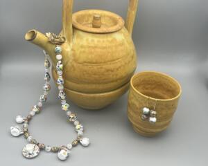Necklace set | Ceramic artisan birds in tree pendant and bead...