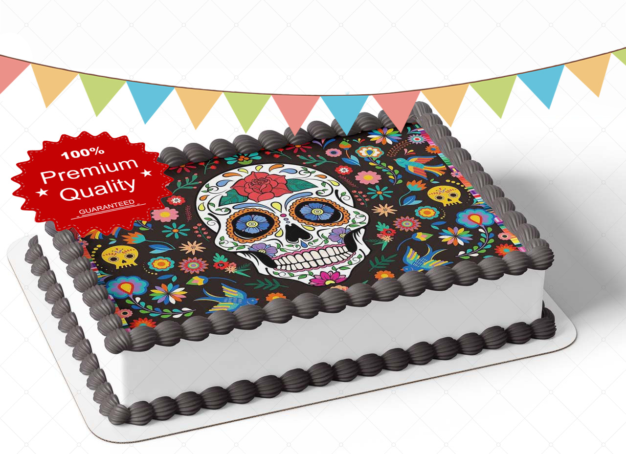 Day of Death Skull Life and Death Edible Image Themed Edible Birthday Party Cake Topper Sheet Edible Sticker Decal