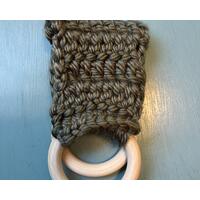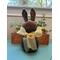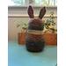 This bunny was made with Hobby Lobby's Yarn Bee Dream Spun yarn in Fired Bronze color. The yarn is 80% acrylic and 20% superwash wool. The ears have wire in them to hold them up firmly. This bunny stands approximately 12" tall. The design is my own, inspired by a bunny on the internet that was made with twine.
