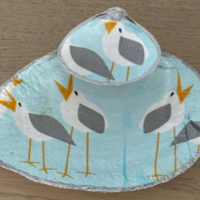 Each clamshell is personally collected by me during daily walks along the beaches of my hometown, Manomet, Massachusetts. These large sea clams are naturally found along the shoreline, making every shell truly authentic and one of a kind. Once brought home, each shell is carefully cleaned, sanded, and hand-painted before being thoughtfully decoupaged and embellished. The entire process is done by hand, with attention to detail at every step, transforming these beach-found treasures into beautiful, meaningful pieces. Each finished shell is created with the intention of becoming a unique and heartfelt gift for friends, family, or anyone who loves the beauty of the coast.