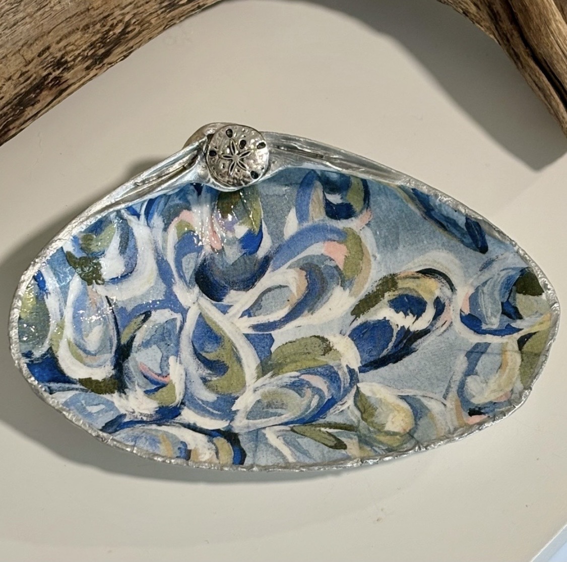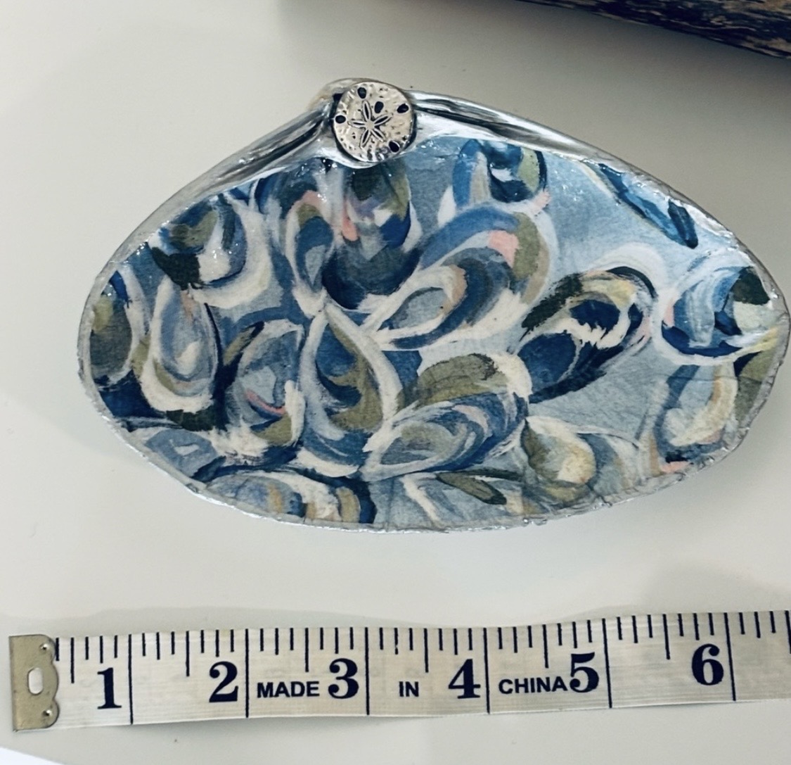 Each clamshell is personally collected by me during daily walks along the beaches of my hometown, Manomet, Massachusetts. These large sea clams are naturally found along the shoreline, making every shell truly authentic and one of a kind. Once brought home, each shell is carefully cleaned, sanded, and hand-painted before being thoughtfully decoupaged and embellished. The entire process is done by hand, with attention to detail at every step, transforming these beach-found treasures into beautiful, meaningful pieces. Each finished shell is created with the intention of becoming a unique and heartfelt gift for friends, family, or anyone who loves the beauty of the coast.