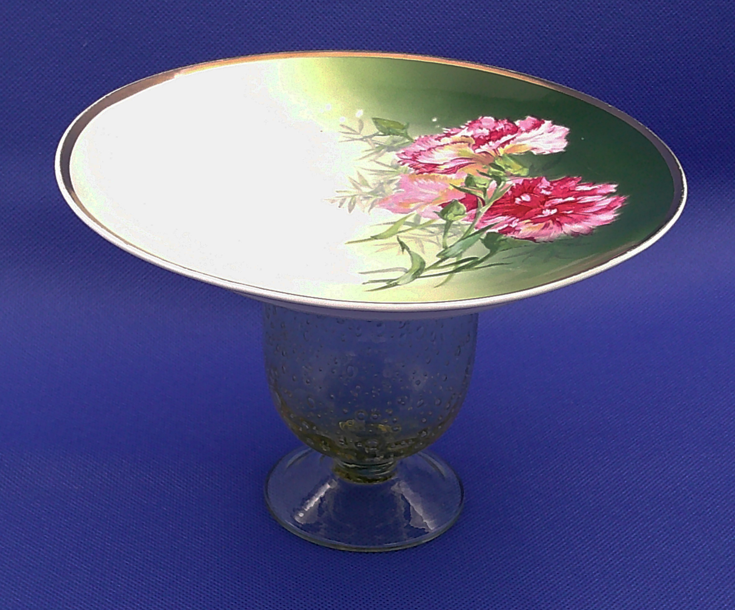 Sometimes it may seem like a dish has lost its usefulness, but if you take the time to reimagine what new life it can have, you can see its potential. This flower dish has lost some of its luster, but it is still very functional and can be made to be a serving dish. The best way to achieve this was by using a unique base to give it some umph! The color in the glass was perfect for complimenting the colors in the plate. It can even be multifunctional and be a jewelry dish if you prefer.