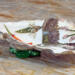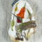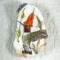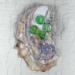After selecting the right shape oyster shell, it is soaked in a vinegar bath to remove any algae and saltwater buildup from the shell exterior. The shell bottom is ground down to sit properly on the glass pebble feet, and the shell hinge is touched up with black, brown, and white paint. Each decoupage image is hand-cut out and applied to the shell interior one at a time. Unlike most decoupage oyster shells, the shell interior is left unpainted, so the natural shell finish is visible. After applying several coats of resin, to protect the decoupage and enhance the shell's natural colors, the oyster shell ring or trinket dish is complete.