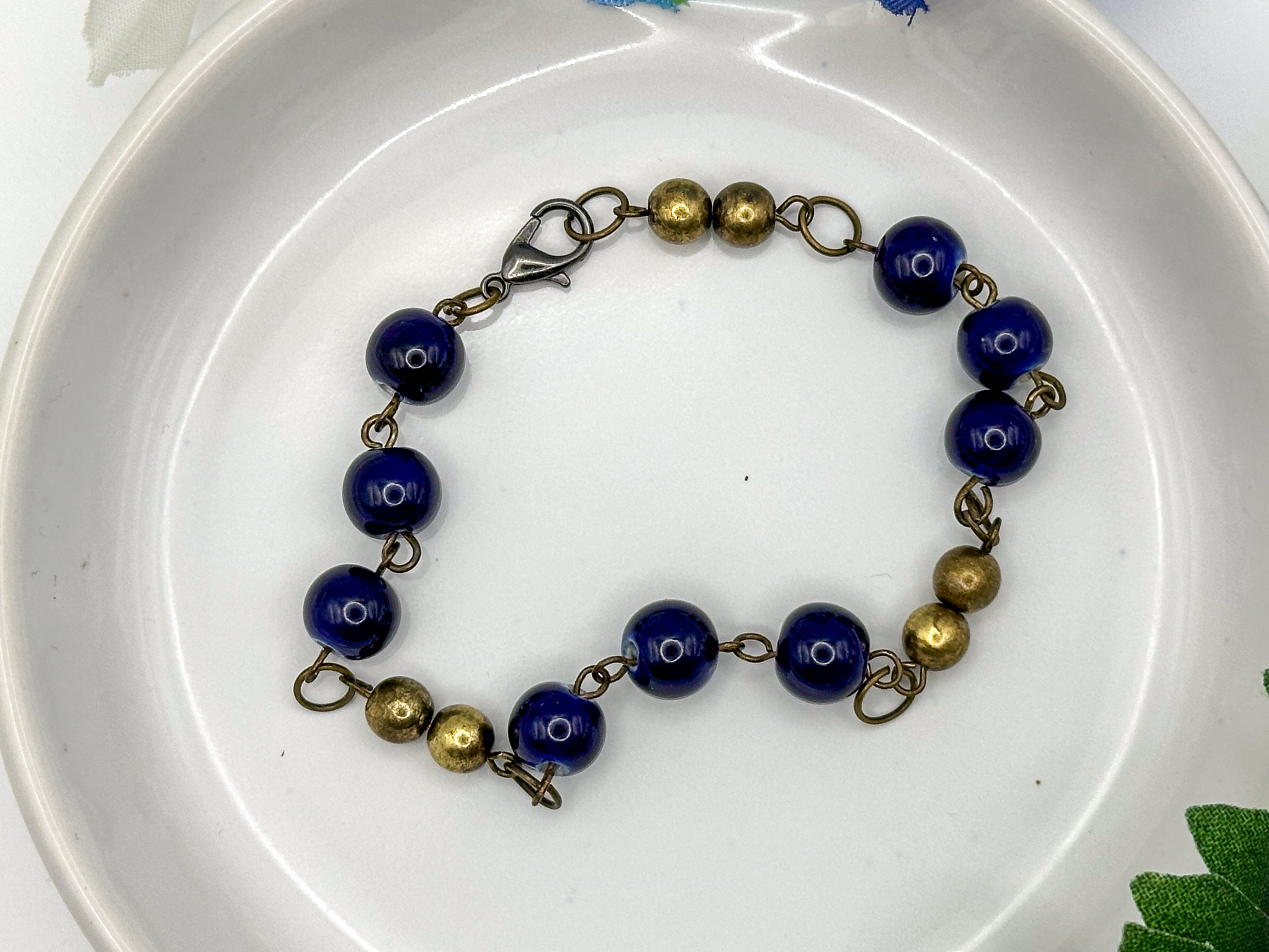 Deep Harbor Bracelet – Rich Blue Glass with Antique Gold Accents