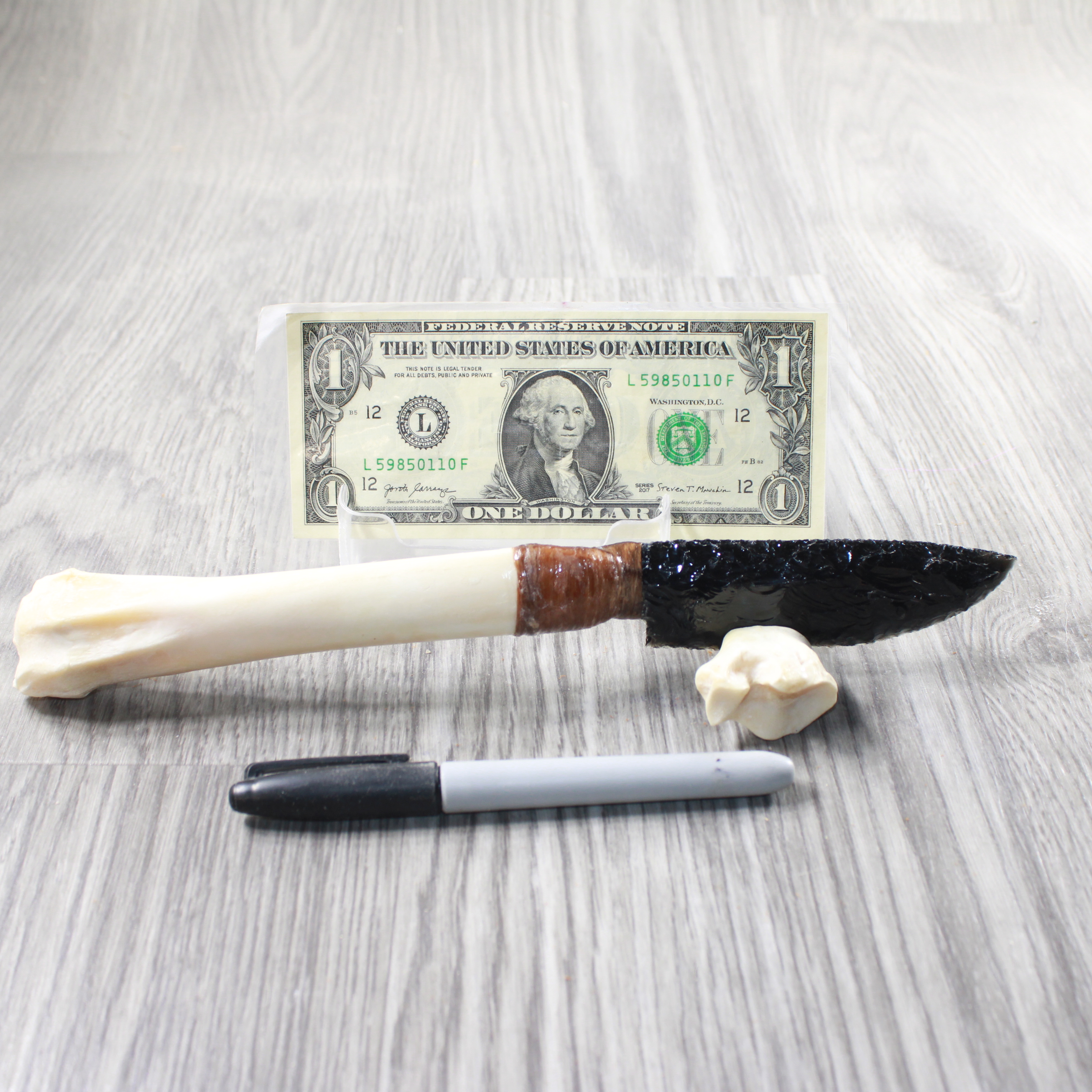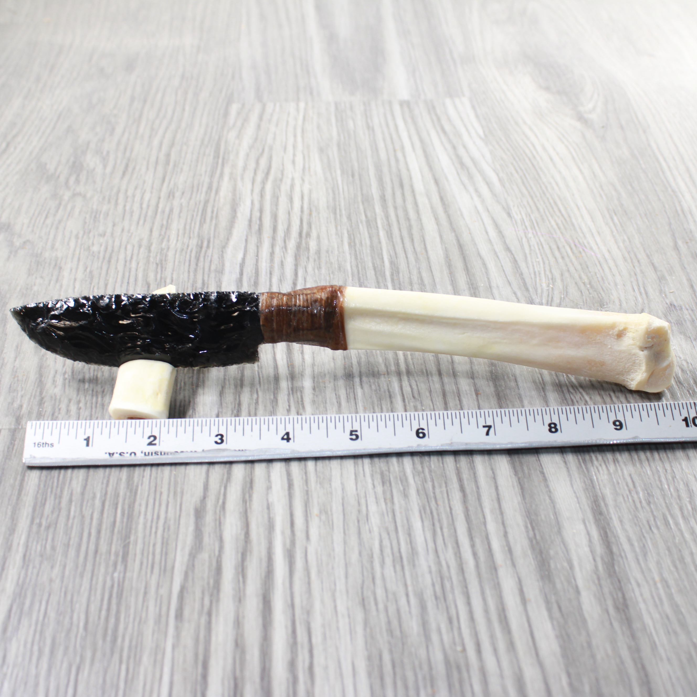 The handle is made from a deer leg bone.