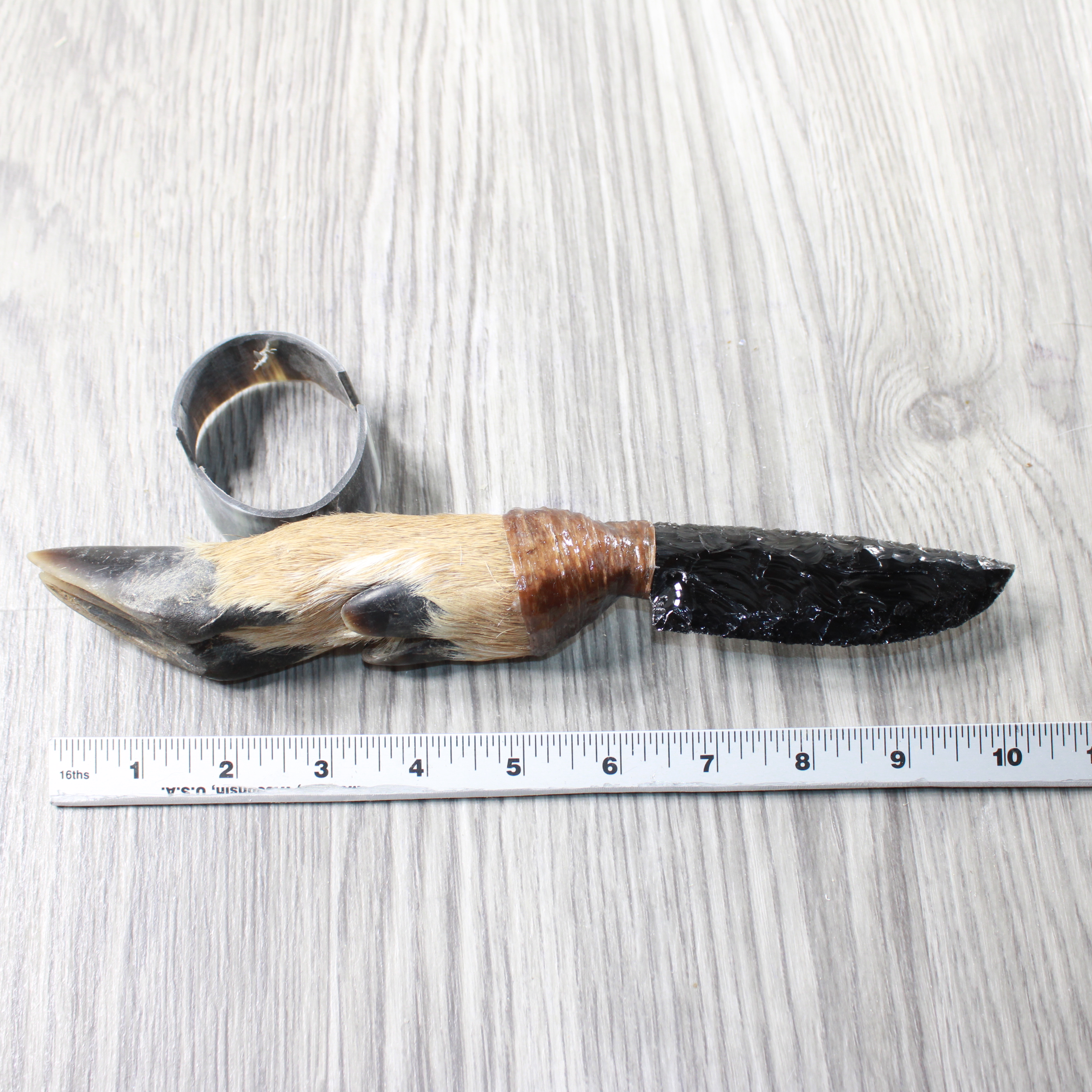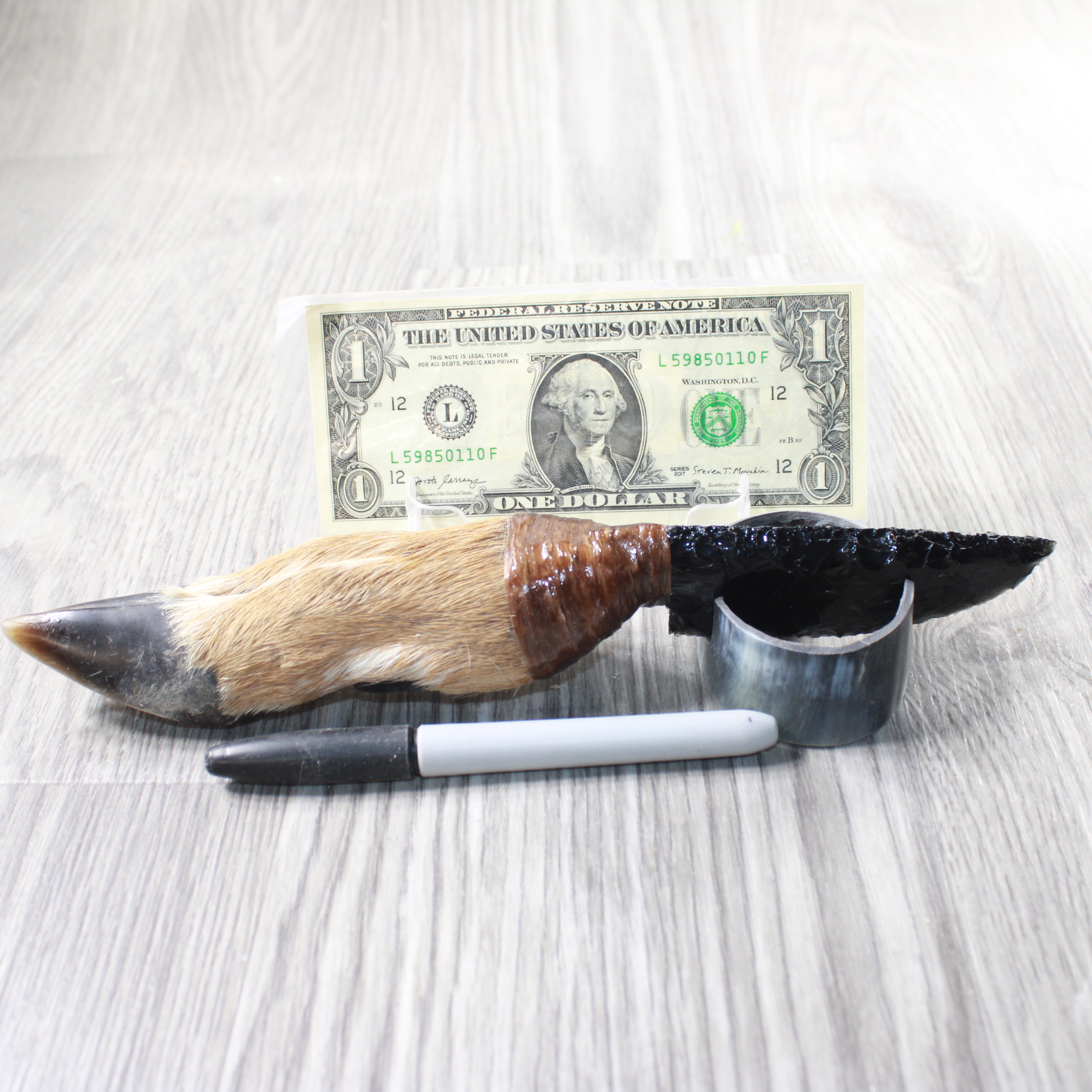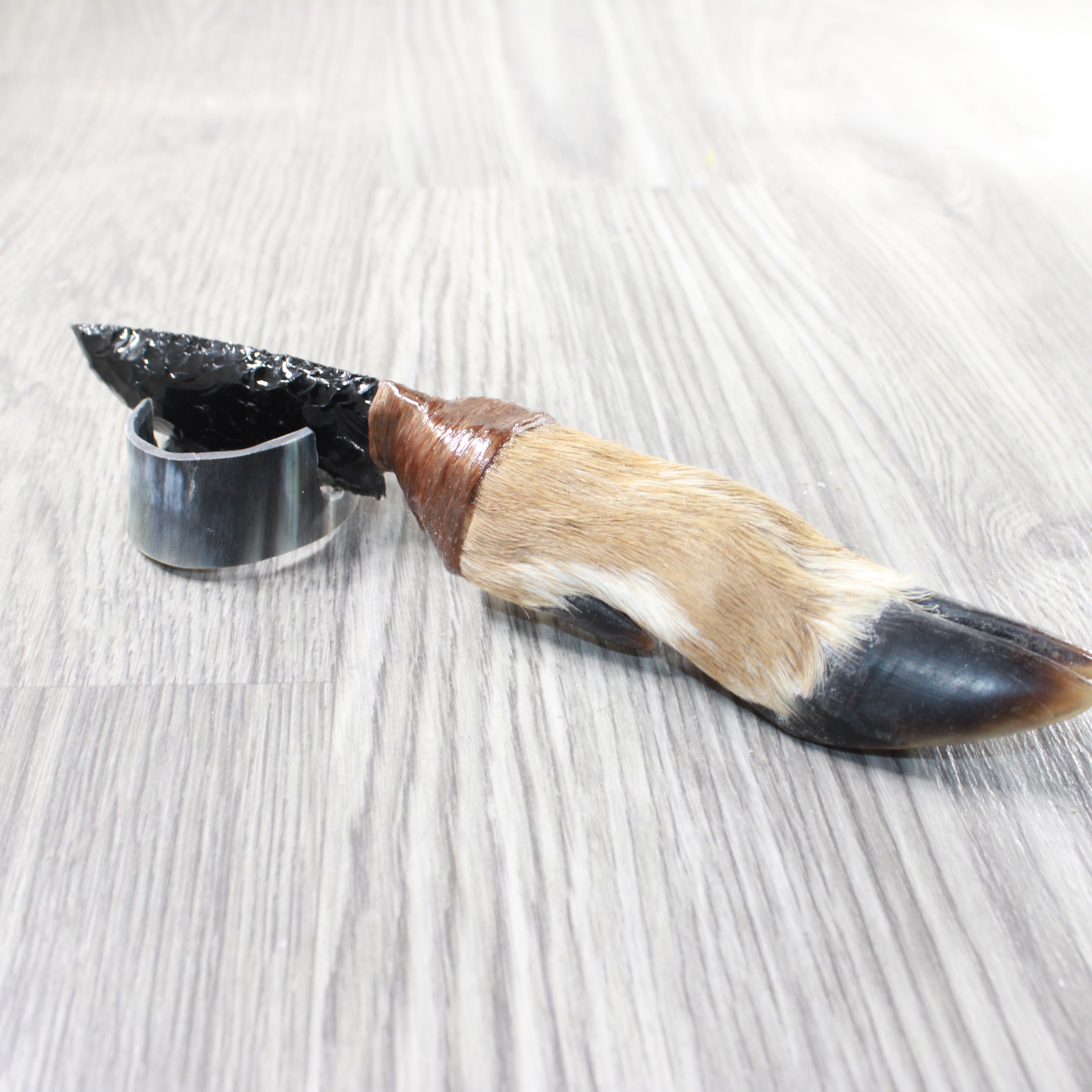 The handle is made from a deer foot.