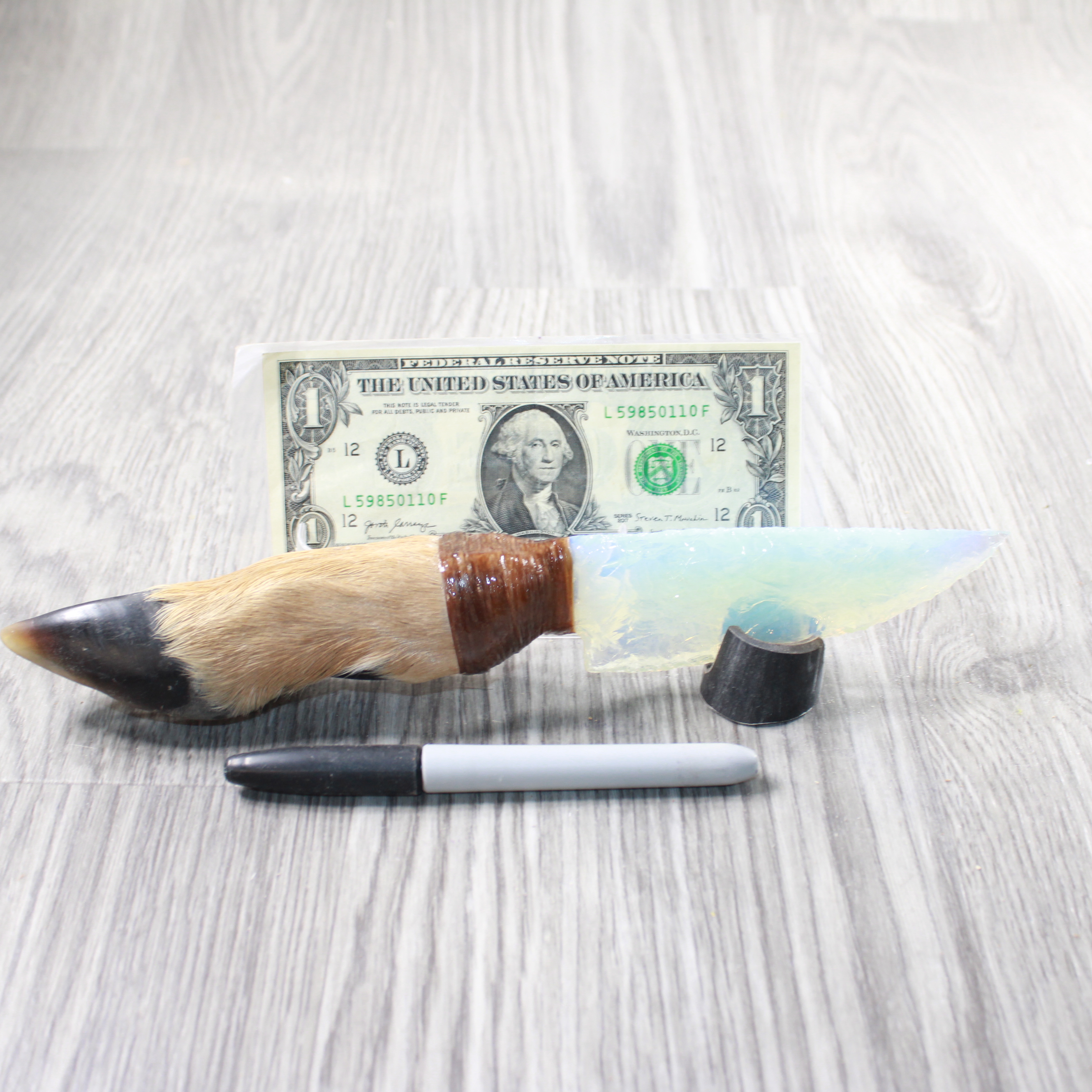 The handle is made from a deer foot.