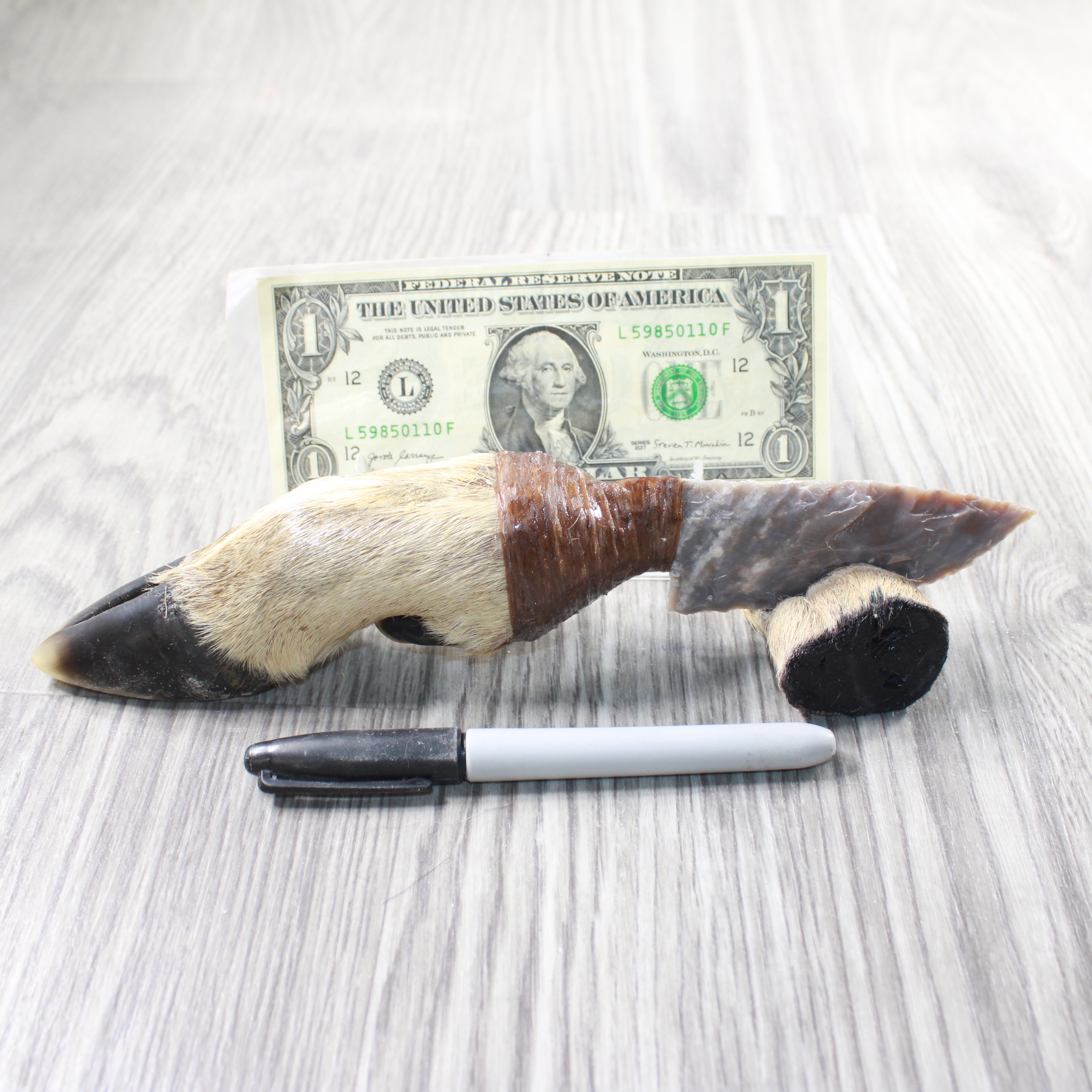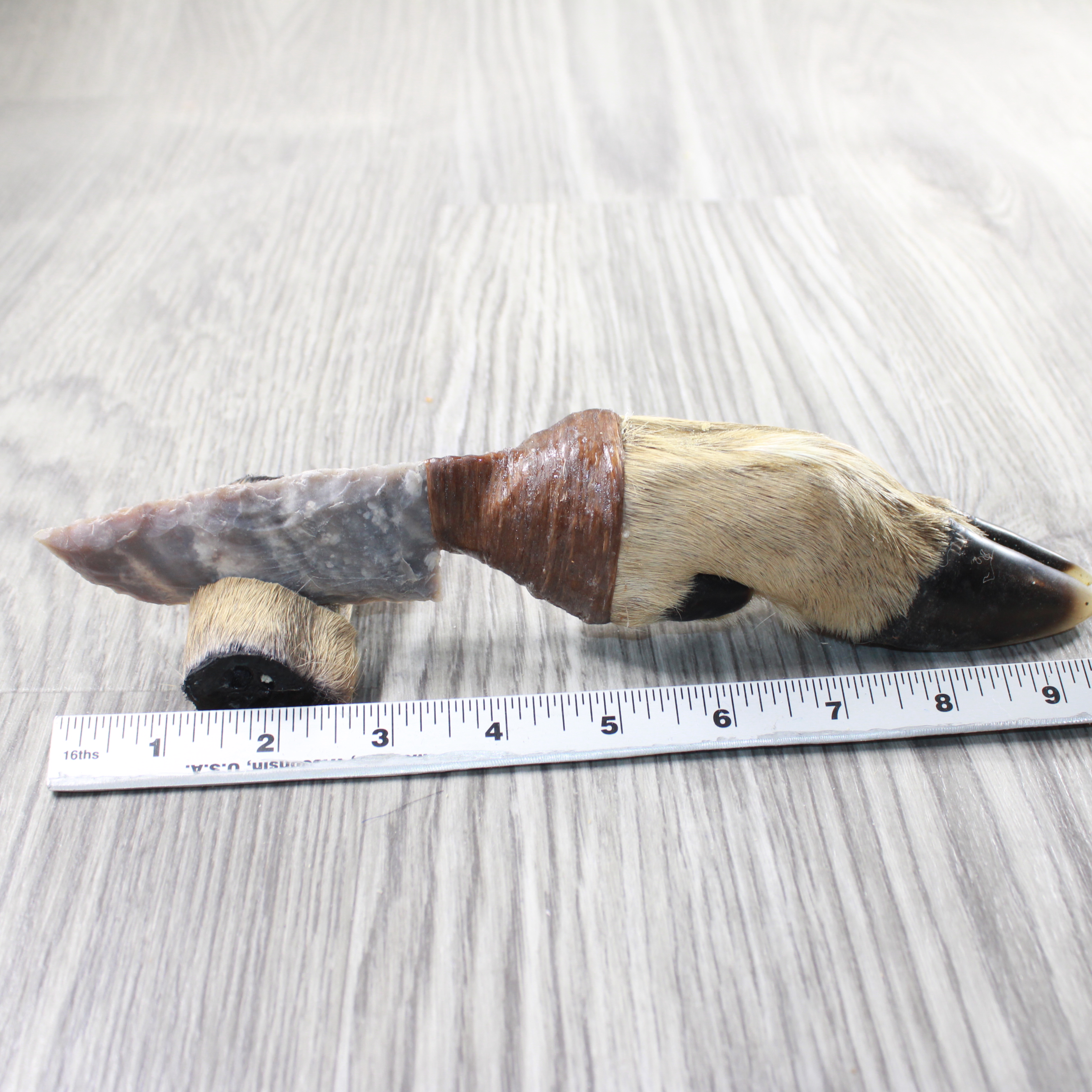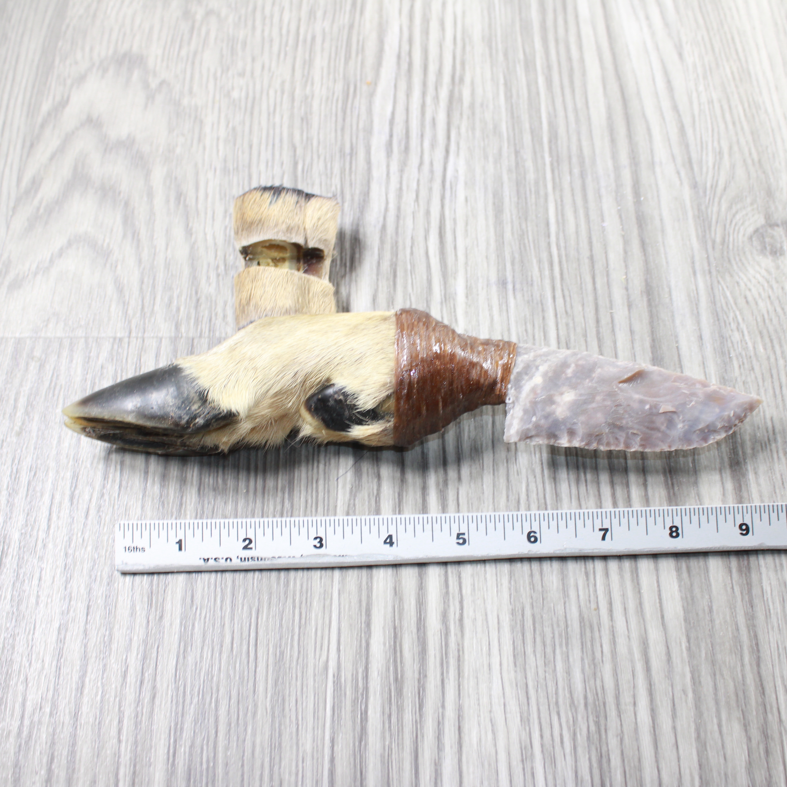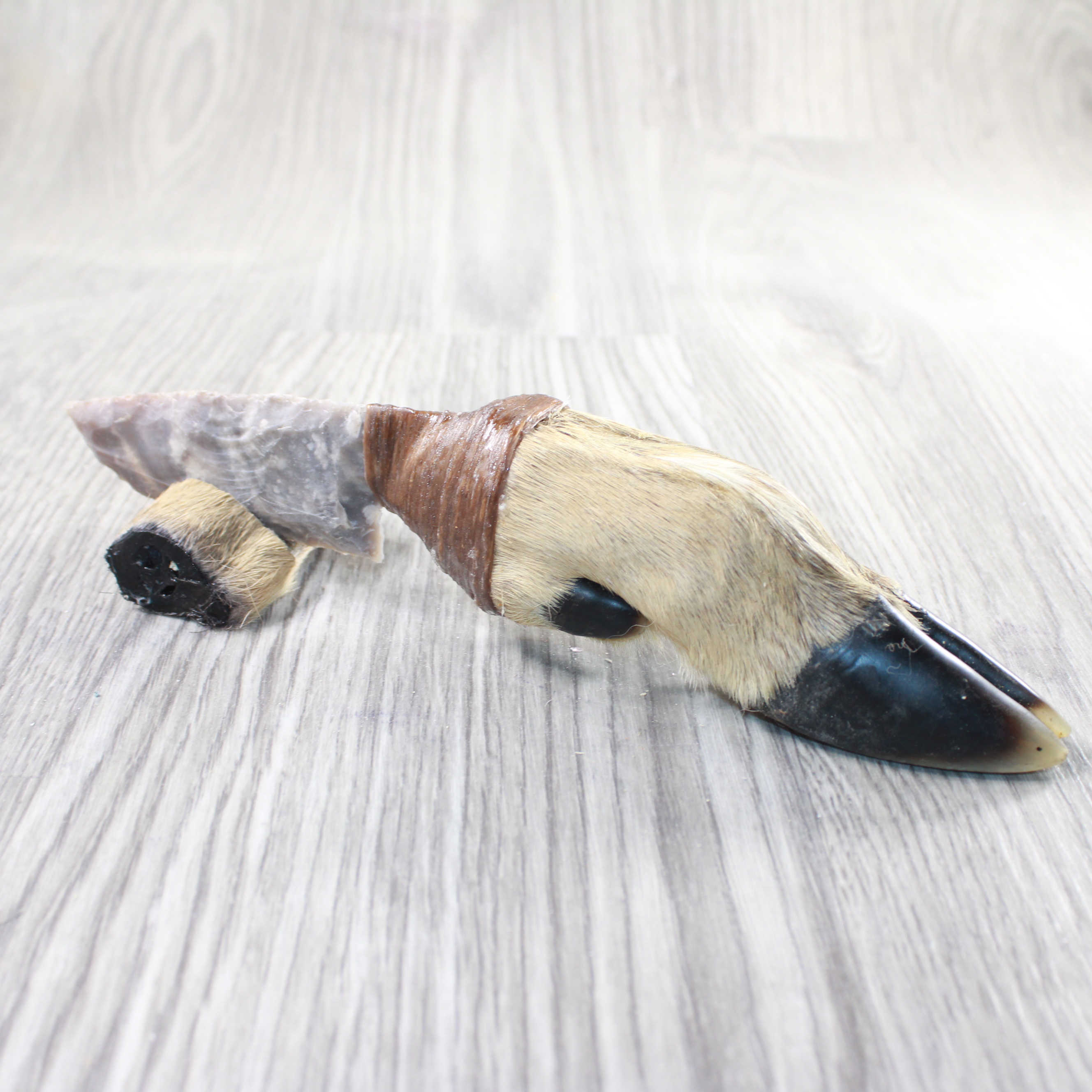 The handle is made from a deer foot.