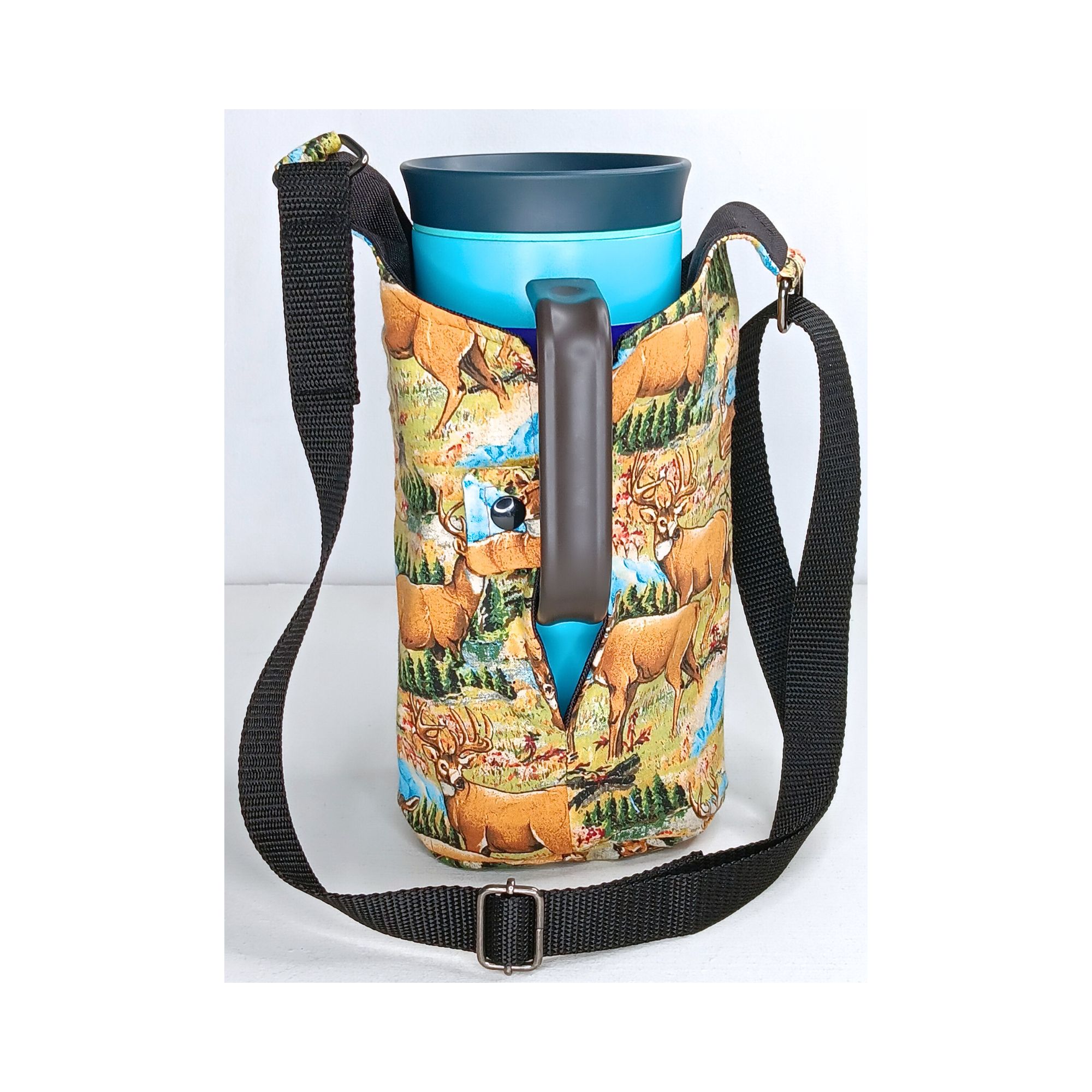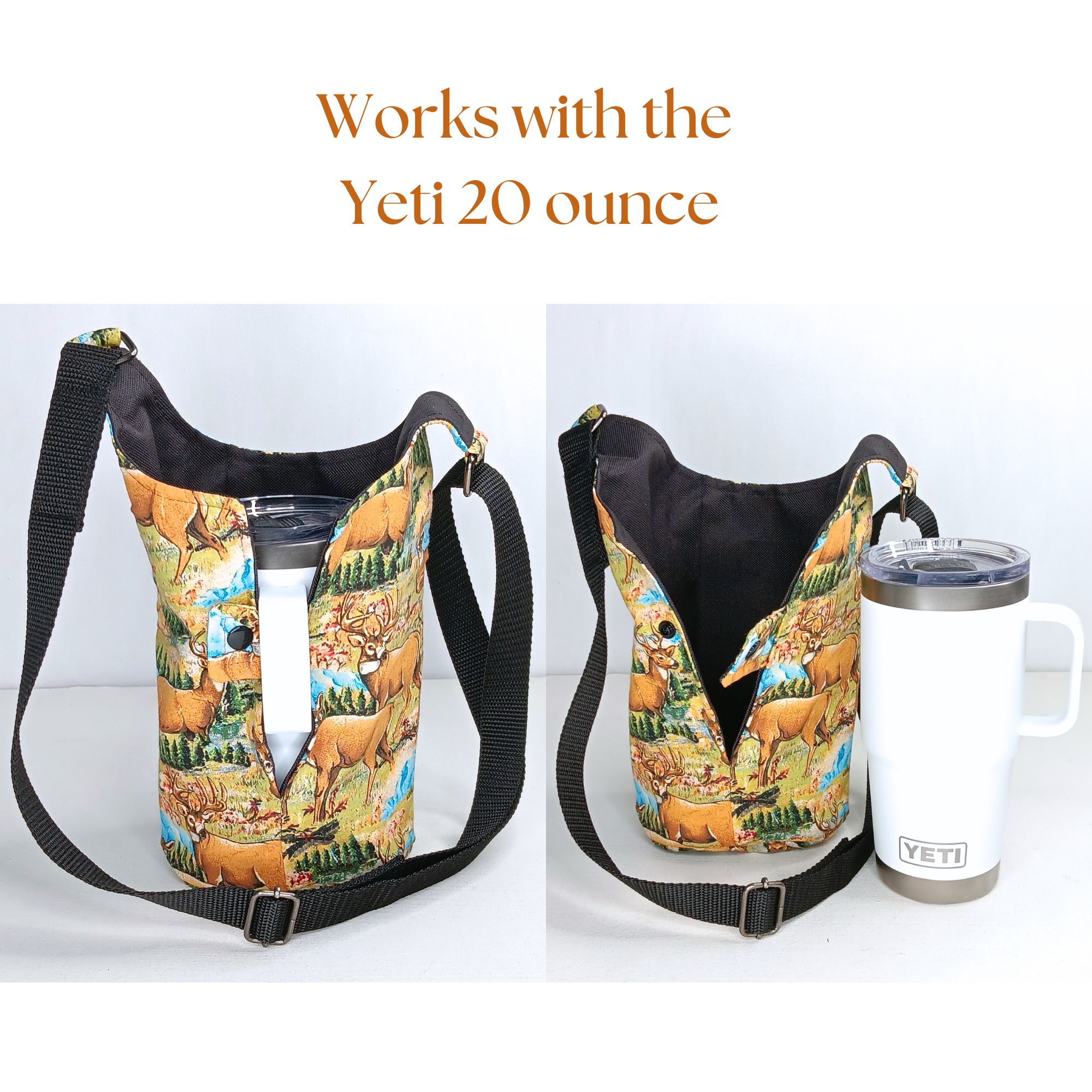 Easily carry your tumbler and essentials in this thoughtfully designed crossbody bag! Perfect for errands, walks, travel, or everyday use. Works with both handled and non-handled tumblers up to 40 oz.