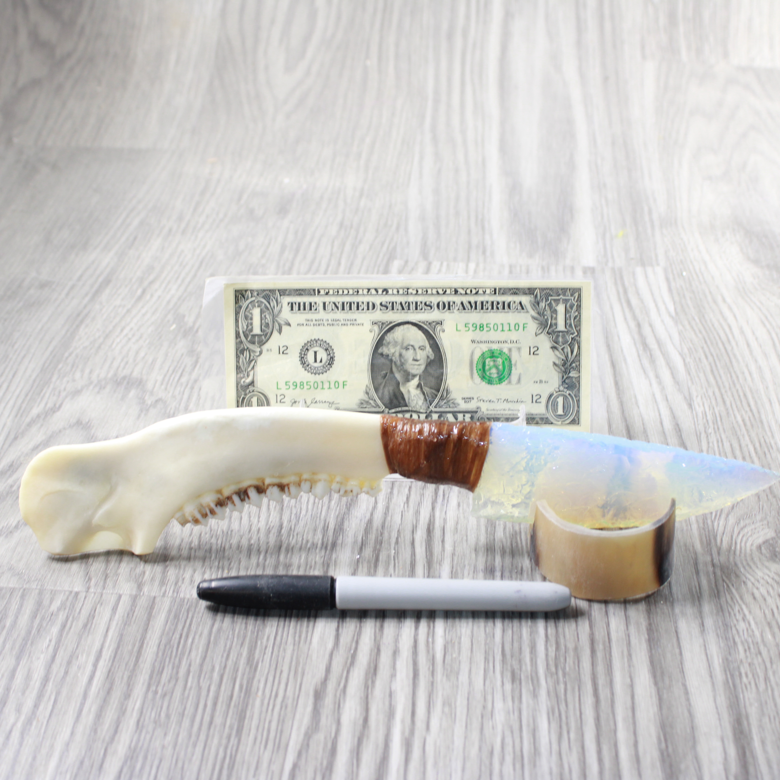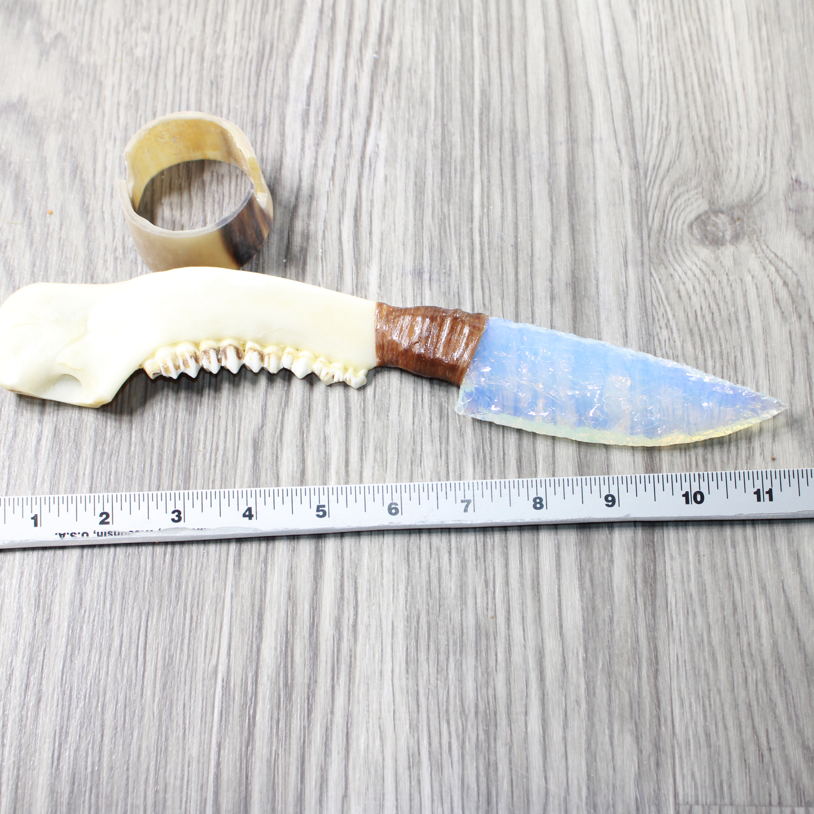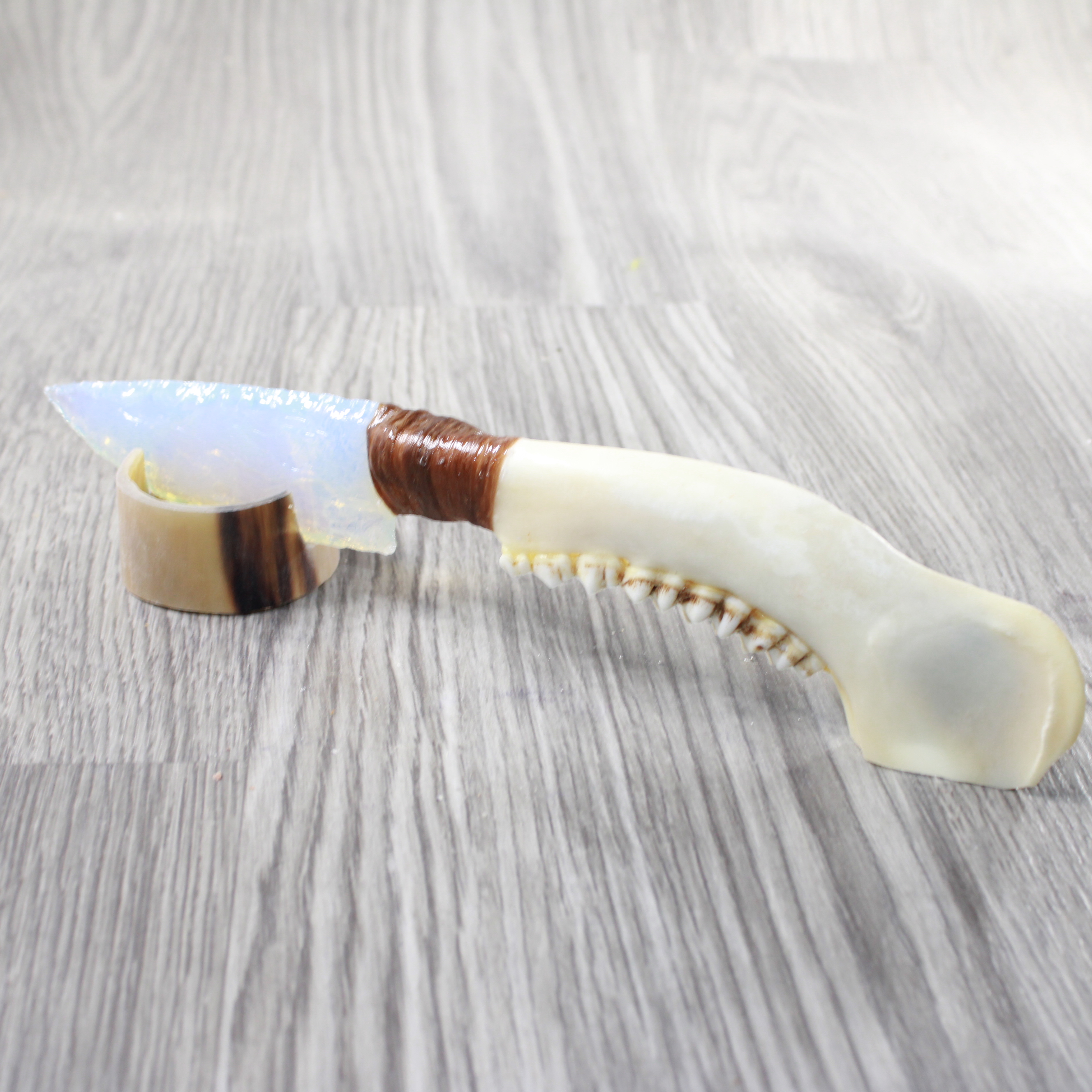 The handle is made from a deer jawbone.