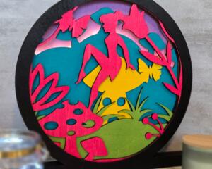 Whimsical Fairy Lighted Shadow Box 12 x 12 in. - Laser Cut Wo...