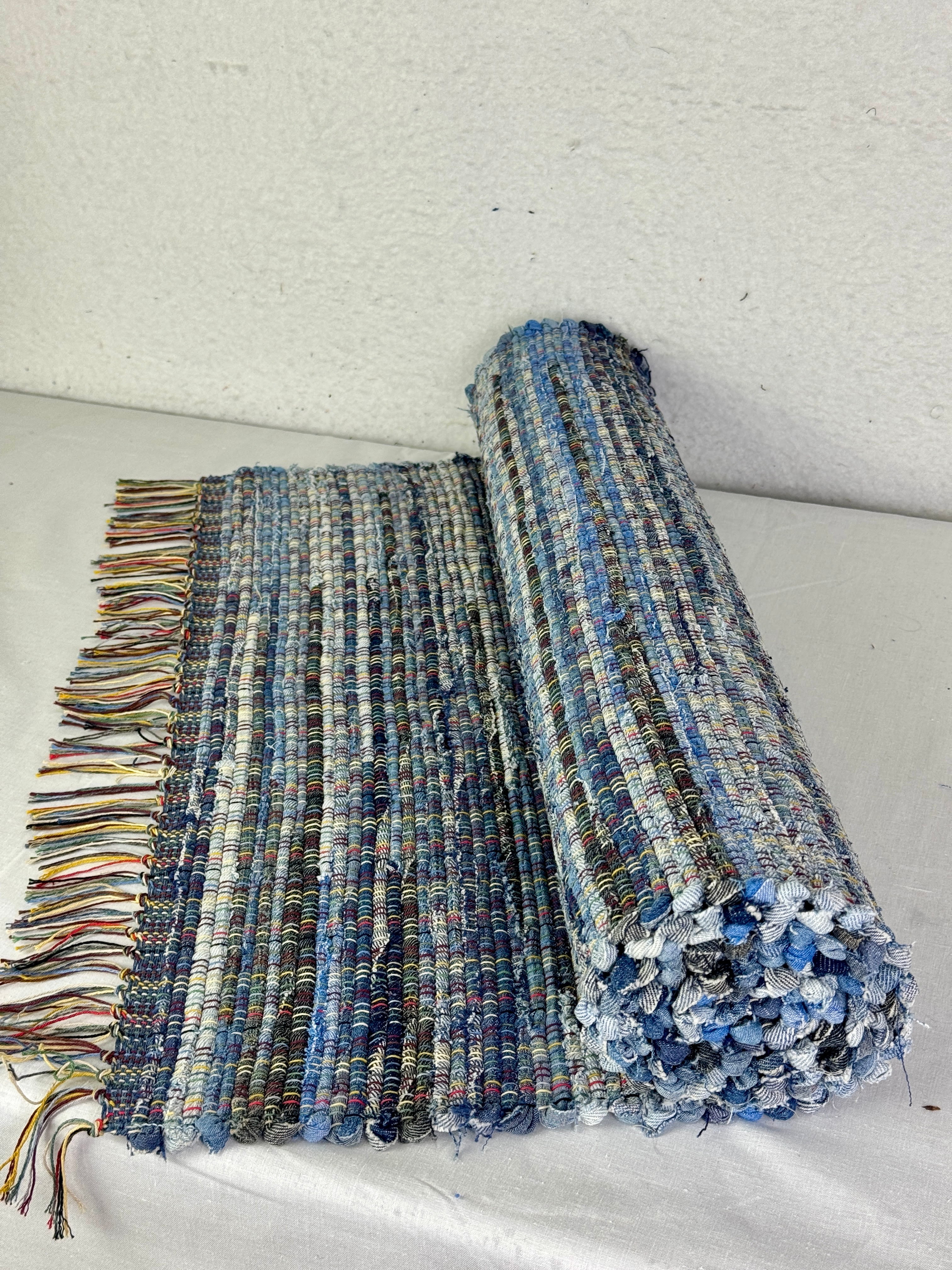Discover the extraordinary world of recycling with my remarkable rugs. Crafted from once-beloved household textiles, these rugs breathe new life into forgotten fabrics. Each rug is a captivating tapestry of repurposed wonders, blending sweaters, socks, shirts, jeans, bedding, and beyond. Each rug lends its own uniqueness due to the blend of textures and colors.