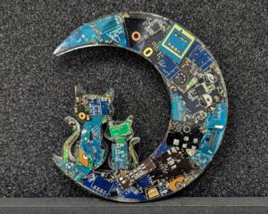 Cats in the Moon – Resin & Motherboard Cat Wall Art, Funny Up...