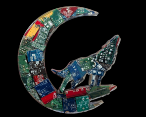 Cyber Wolf in the Moon Wall Art – Resin & Recycled Motherboar...