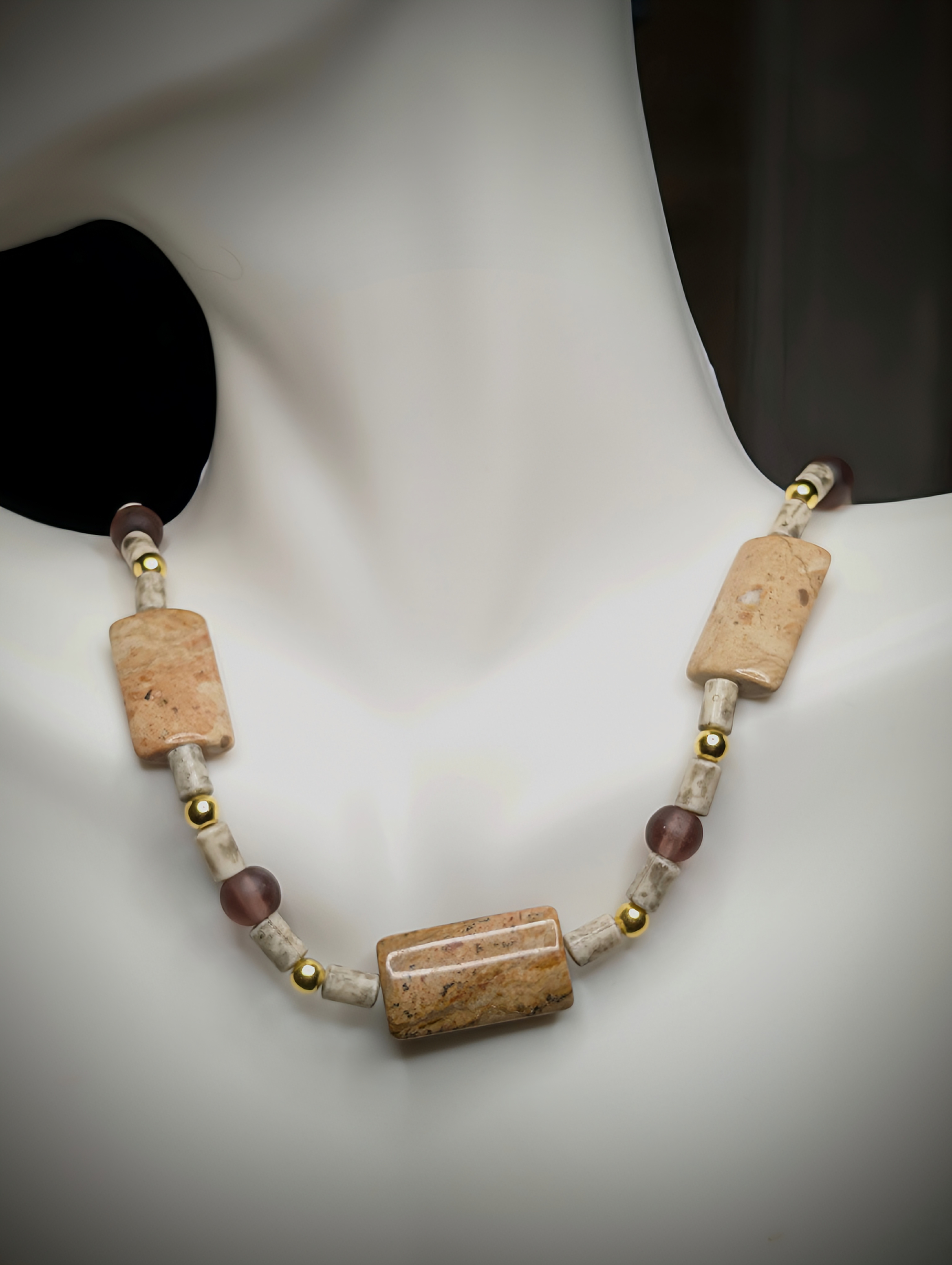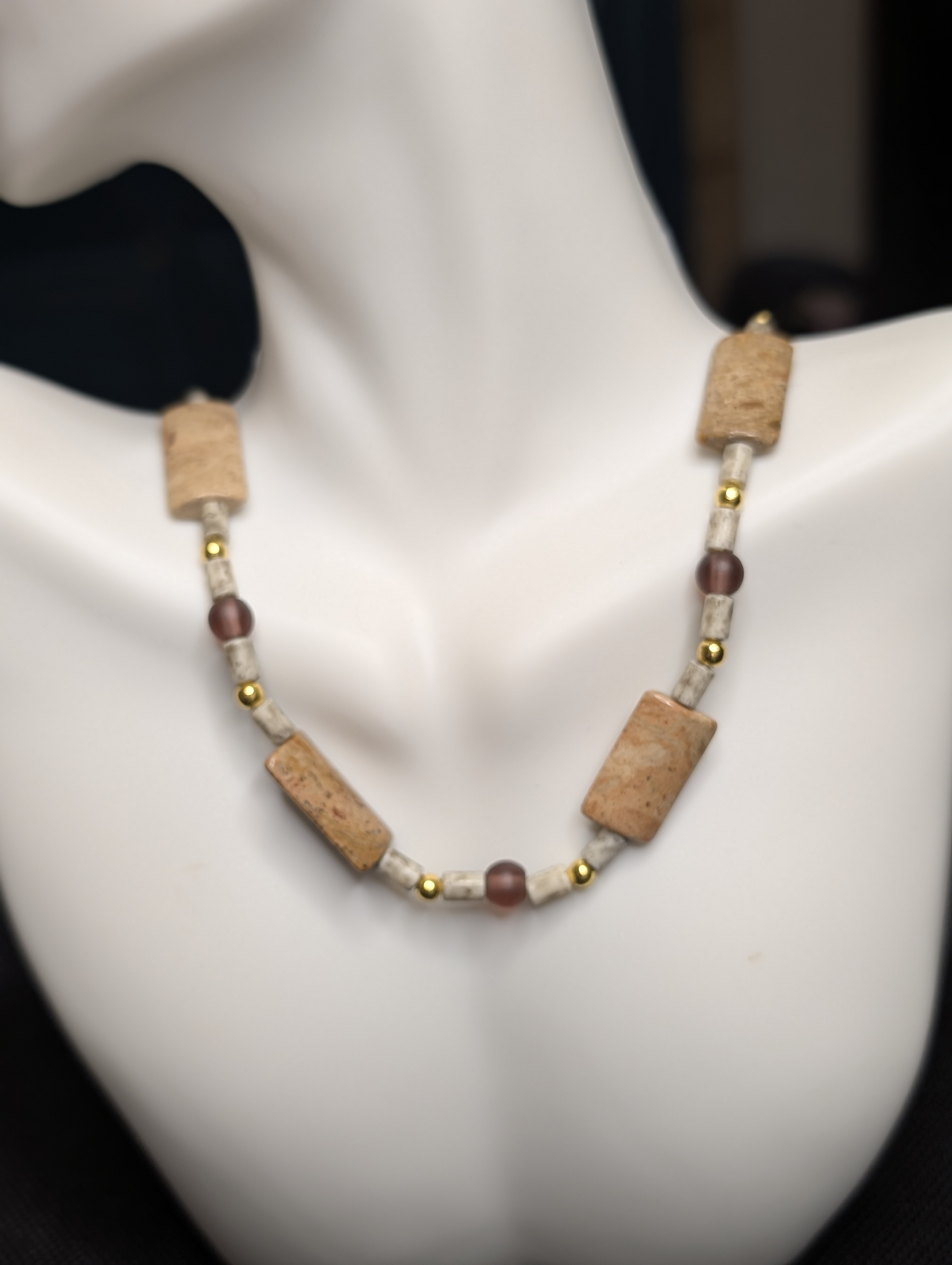 Love more earth toned accessories? Check out this necklace featuring a beautiful blend of brown and gold beads. Perfect for adding a touch of grounding to any outfit, this piece effortlessly transitions from day to night. The warm tones complement a variety of styles, making it a versatile addition to your jewelry collection. Treat yourself or surprise a loved one with this chic, statement piece!