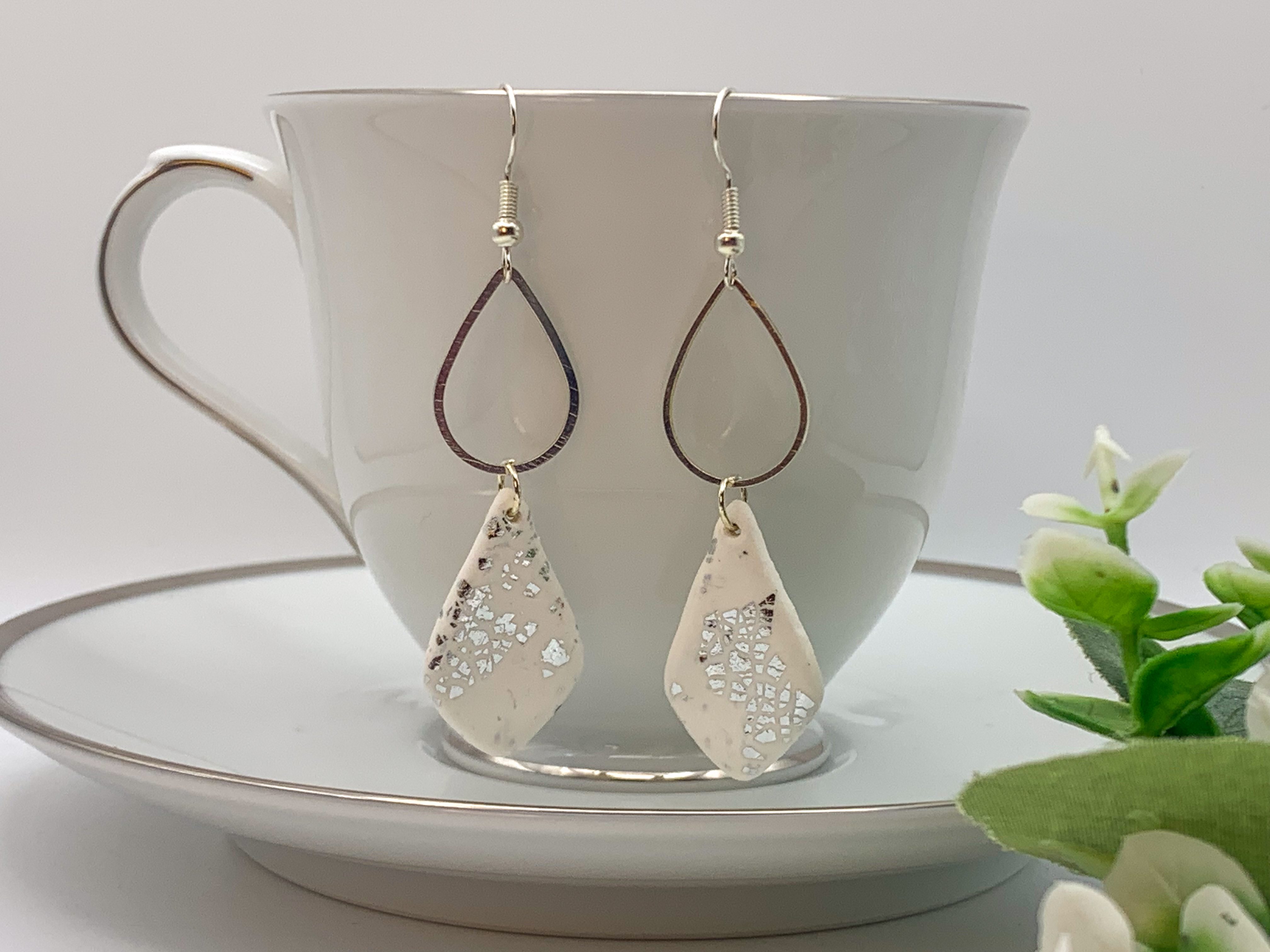 Elegant white diamond-shaped drops accented with shimmering silver foil for a frosty, chic look. Lightweight and perfect for winter vibes!